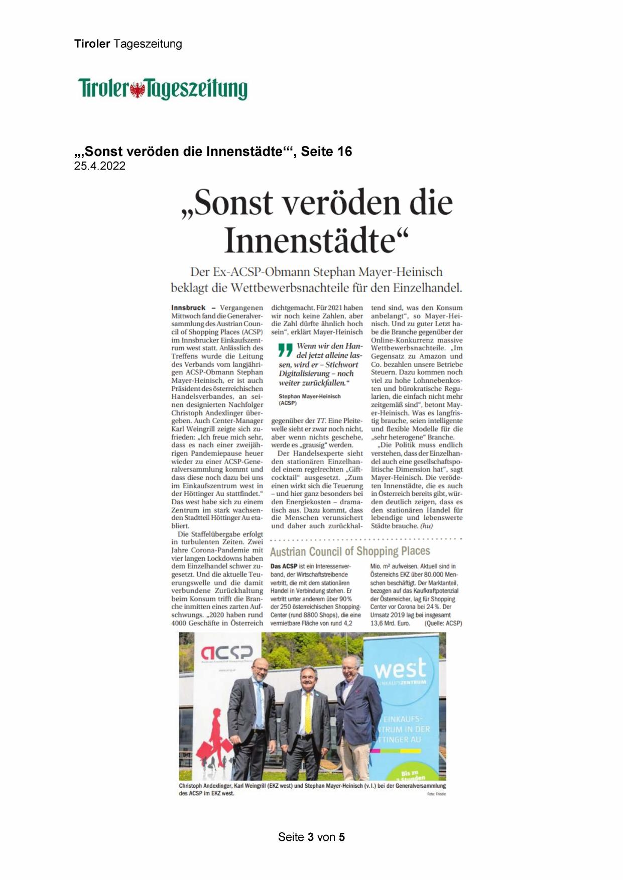 Mittwoch fand die Generalversammlung des Austrian Council of Shopping Places (ACSP)