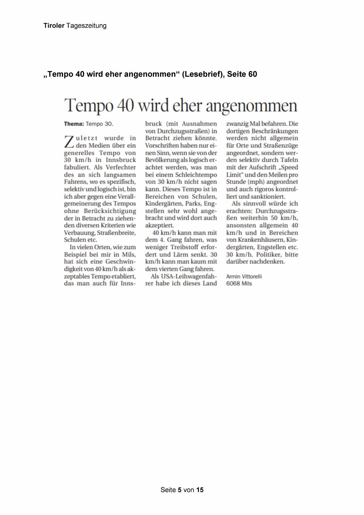 „Tempo 40 wird eher angenommen“ (Lesebrief), Seite 60