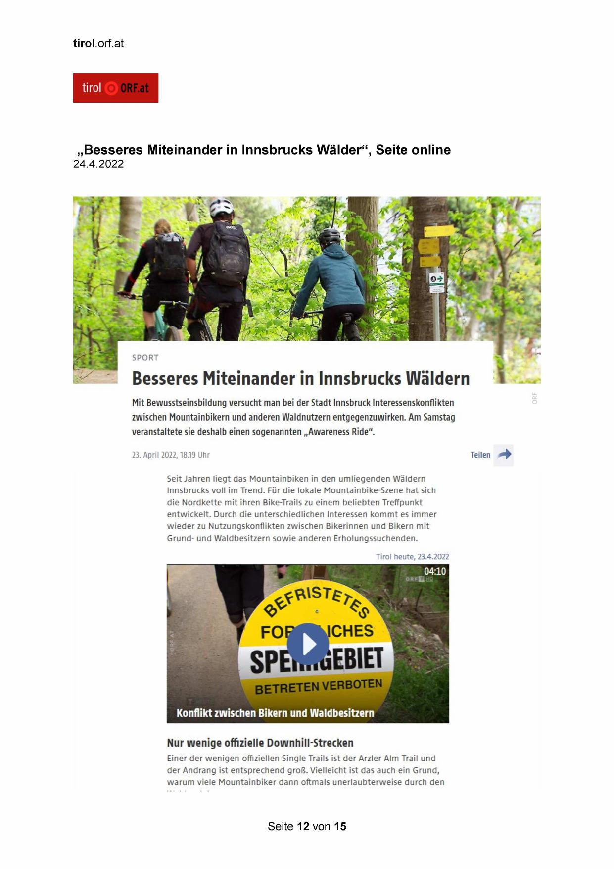 „Besseres Miteinander in Innsbrucks Wälder“, Seite online