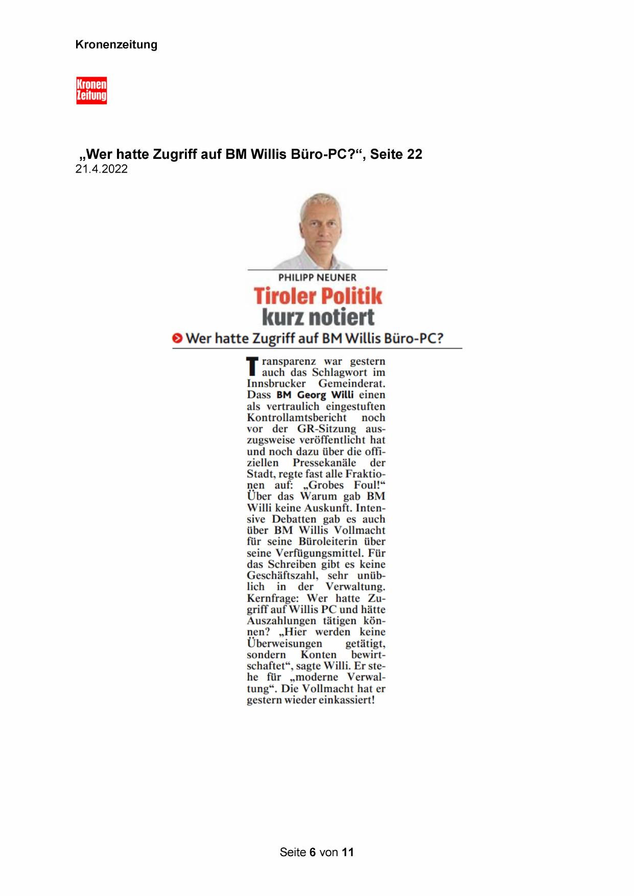 vor der GR-Sitzung auszugsweise veröffentlicht hat