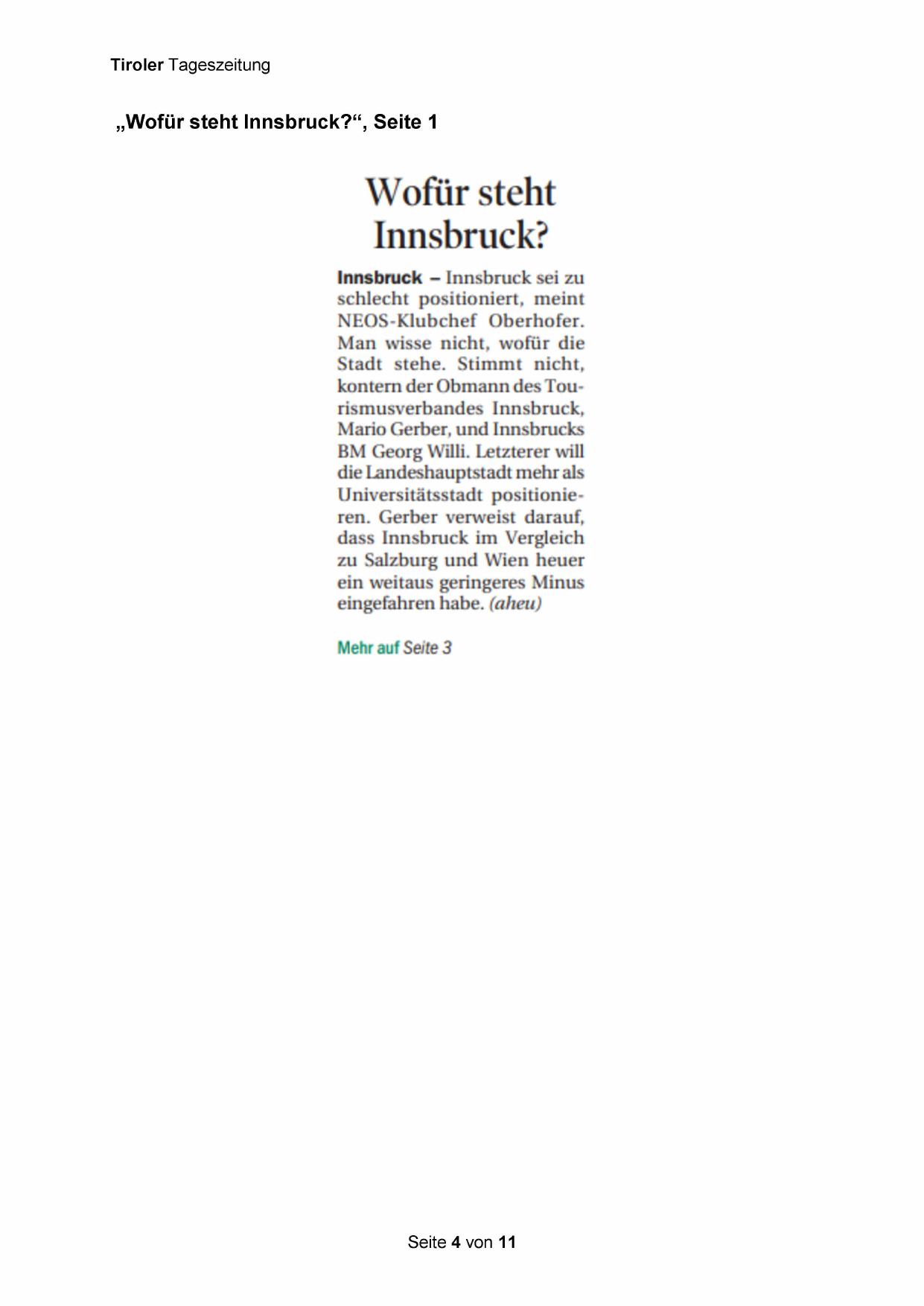 „Wofür steht Innsbruck?“, Seite 1