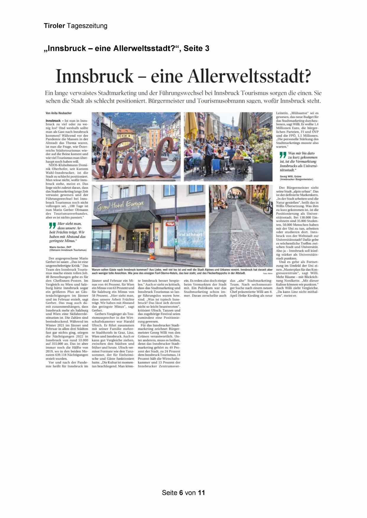 Team des Innsbruck Tourismus mache einen tollen Job.