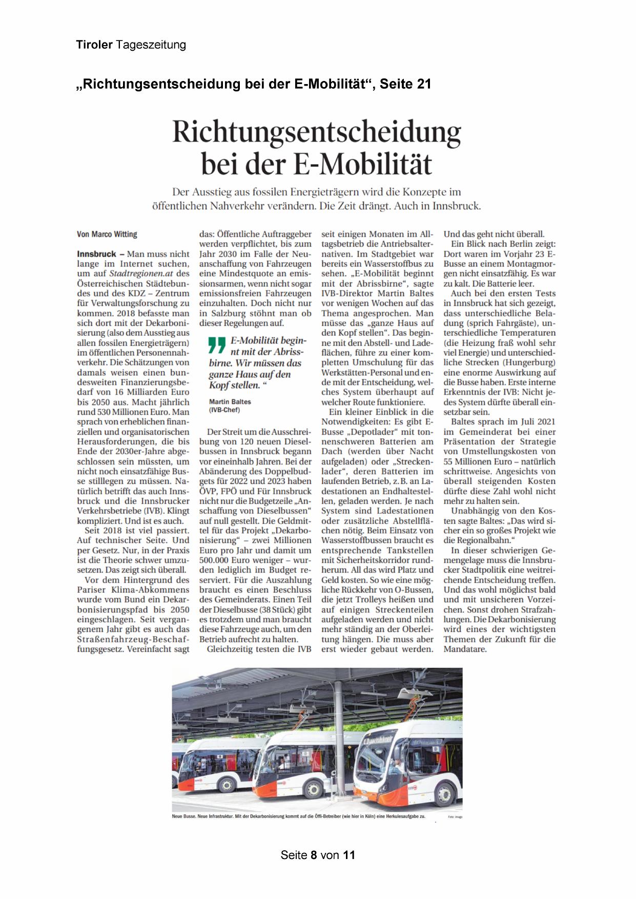 nicht noch einsatzfähige Busse stilllegen zu müssen. Natürlich betrifft das auch Innsbruck und die Innsbrucker