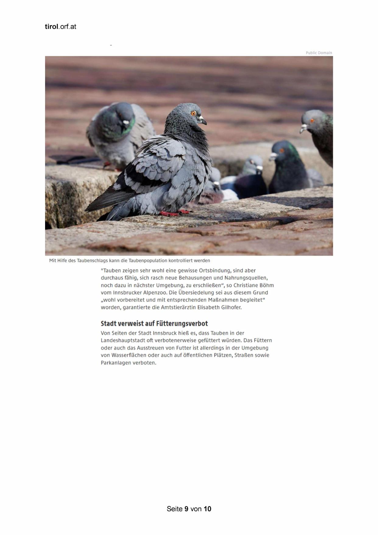 Von Seiten der Stadt Innsbruck hieß es, dass Tauben in der