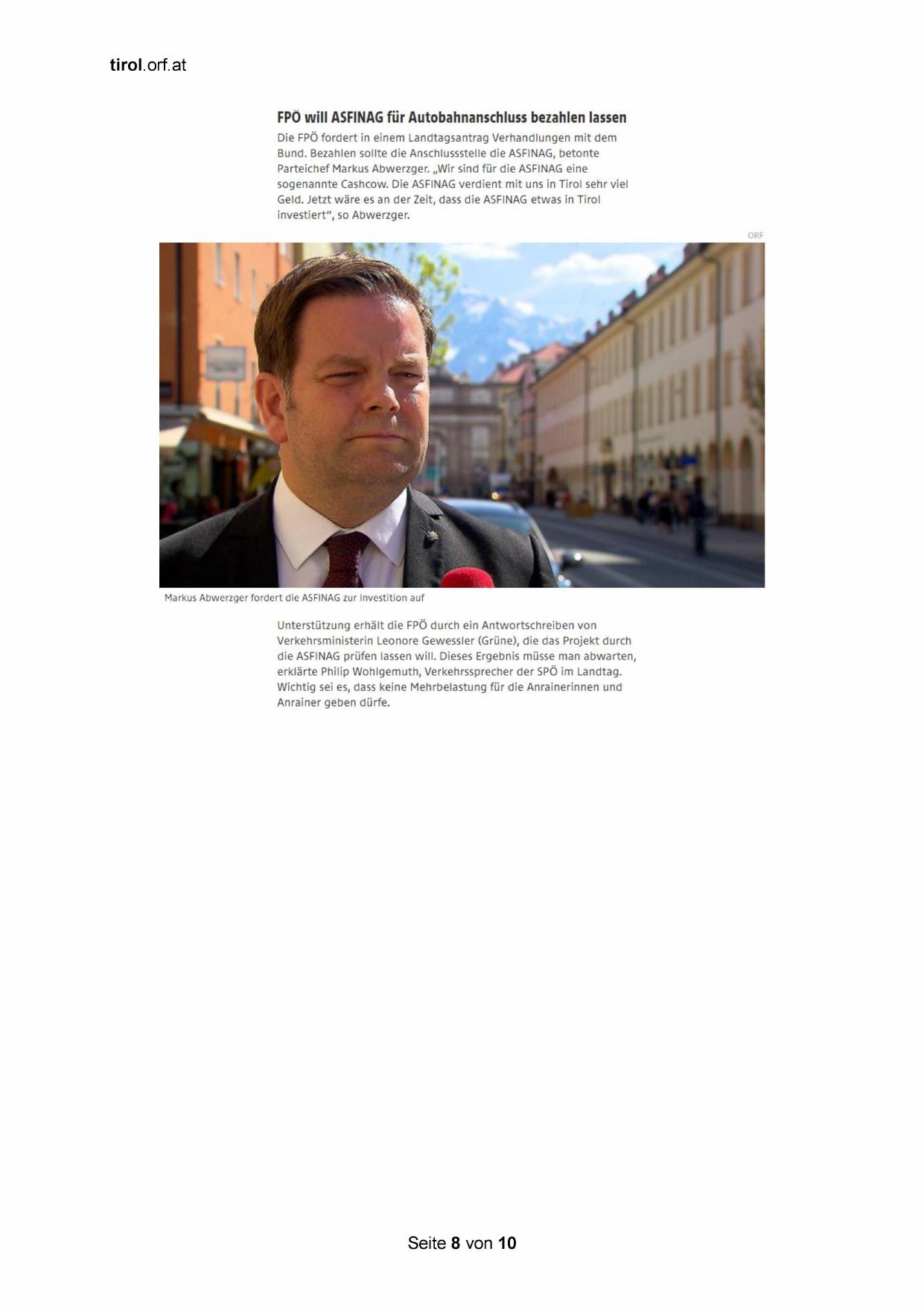 Parteichef Markus Abwerzger. „Wir sind für die ASFINAG eine