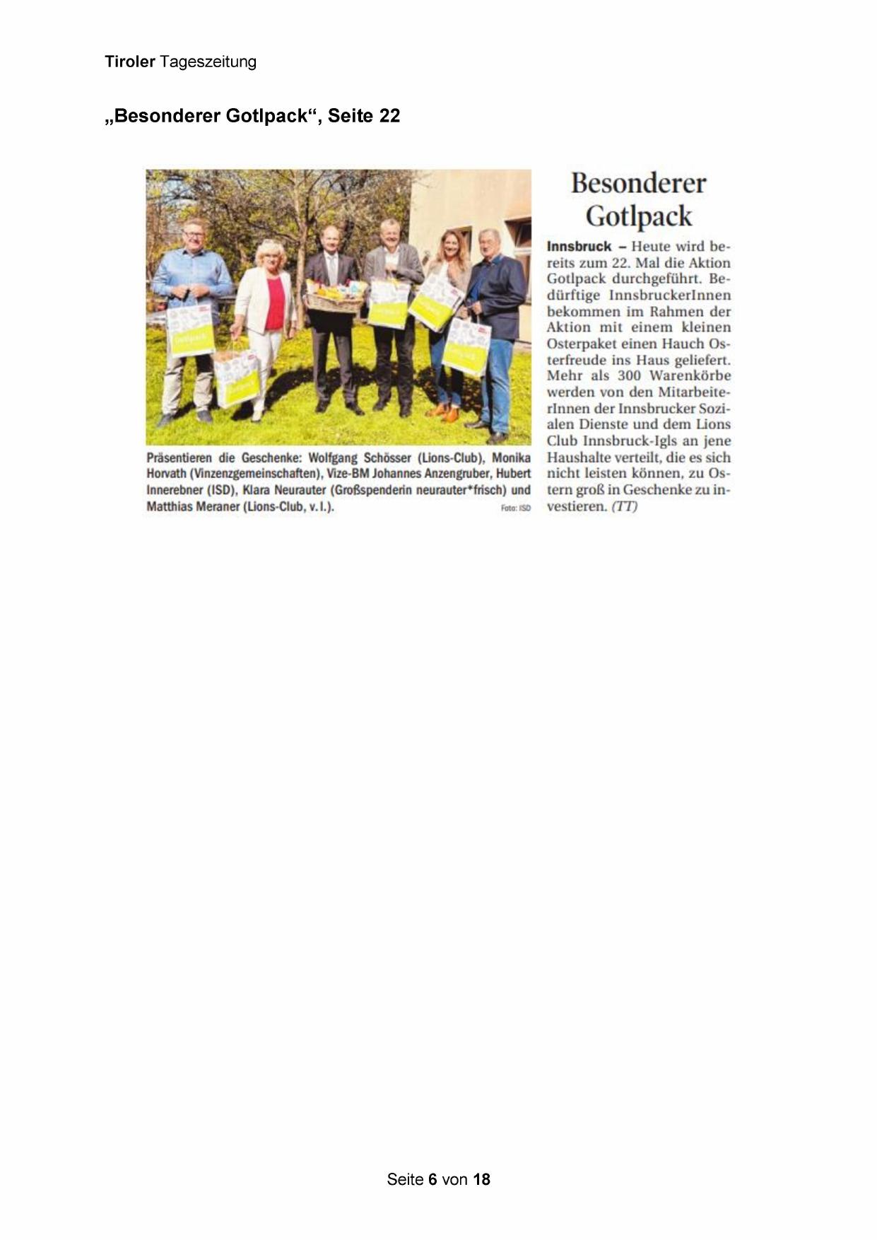 Gotlpack durchgeführt. Bedürftige InnsbruckerInnen