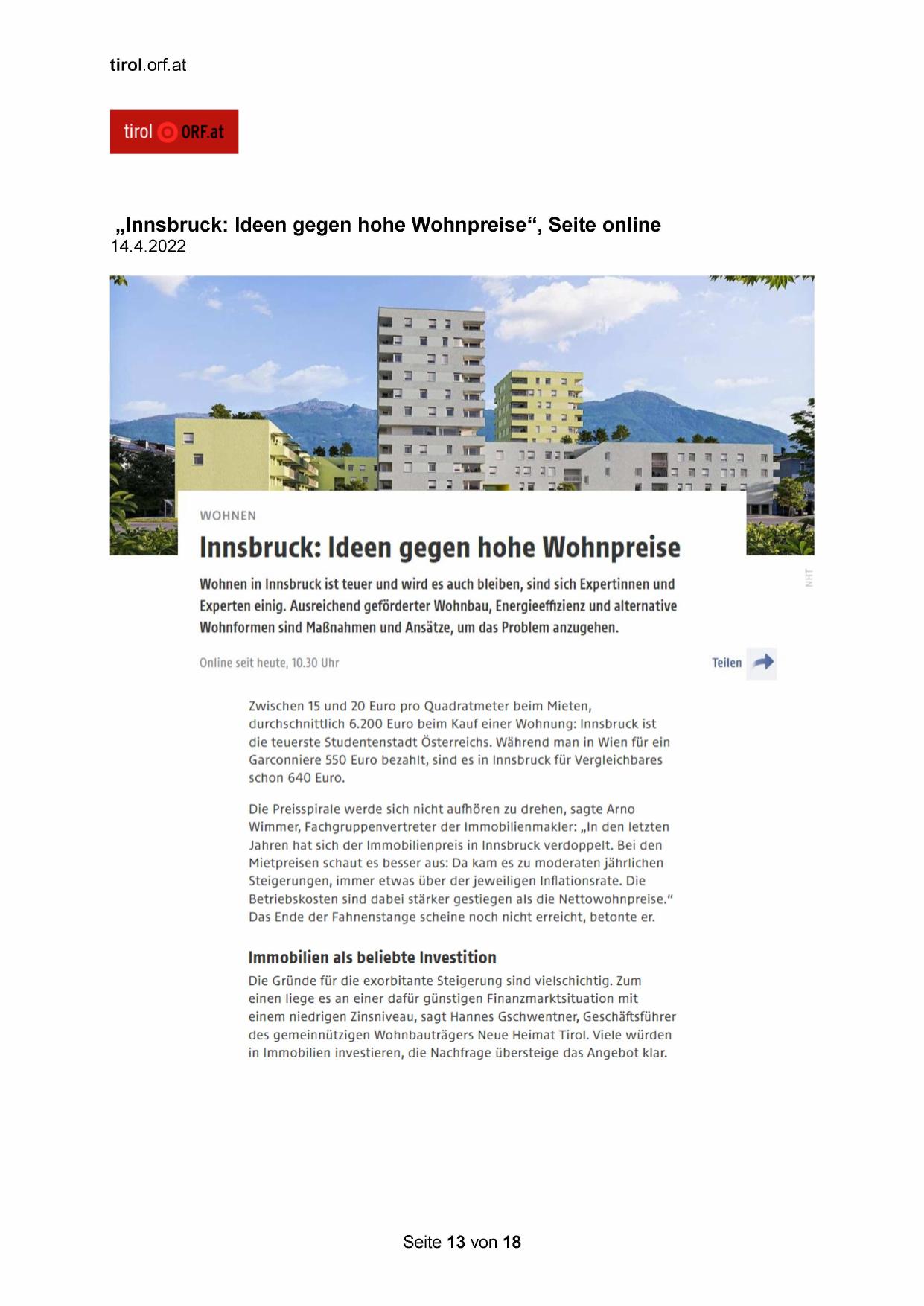 „Innsbruck: Ideen gegen hohe Wohnpreise“, Seite online