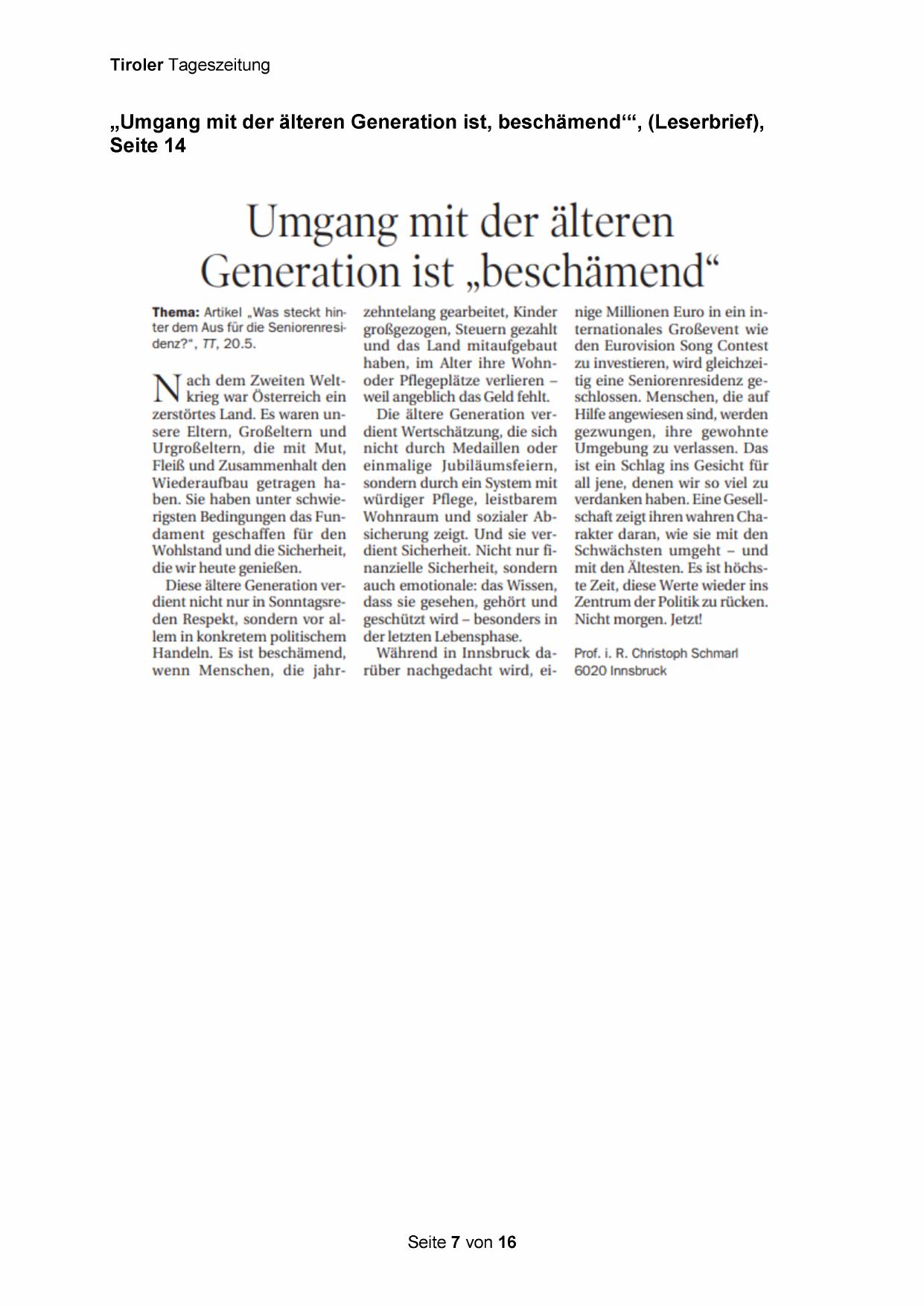 Thema: Artike! „Was steckt hinter dem Aus für die Seniorenresidenz?“, TT, 20.5.