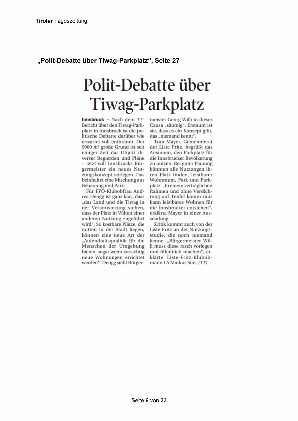 „Polit-Debatte über Tiwag-Parkplatz“, Seite 27