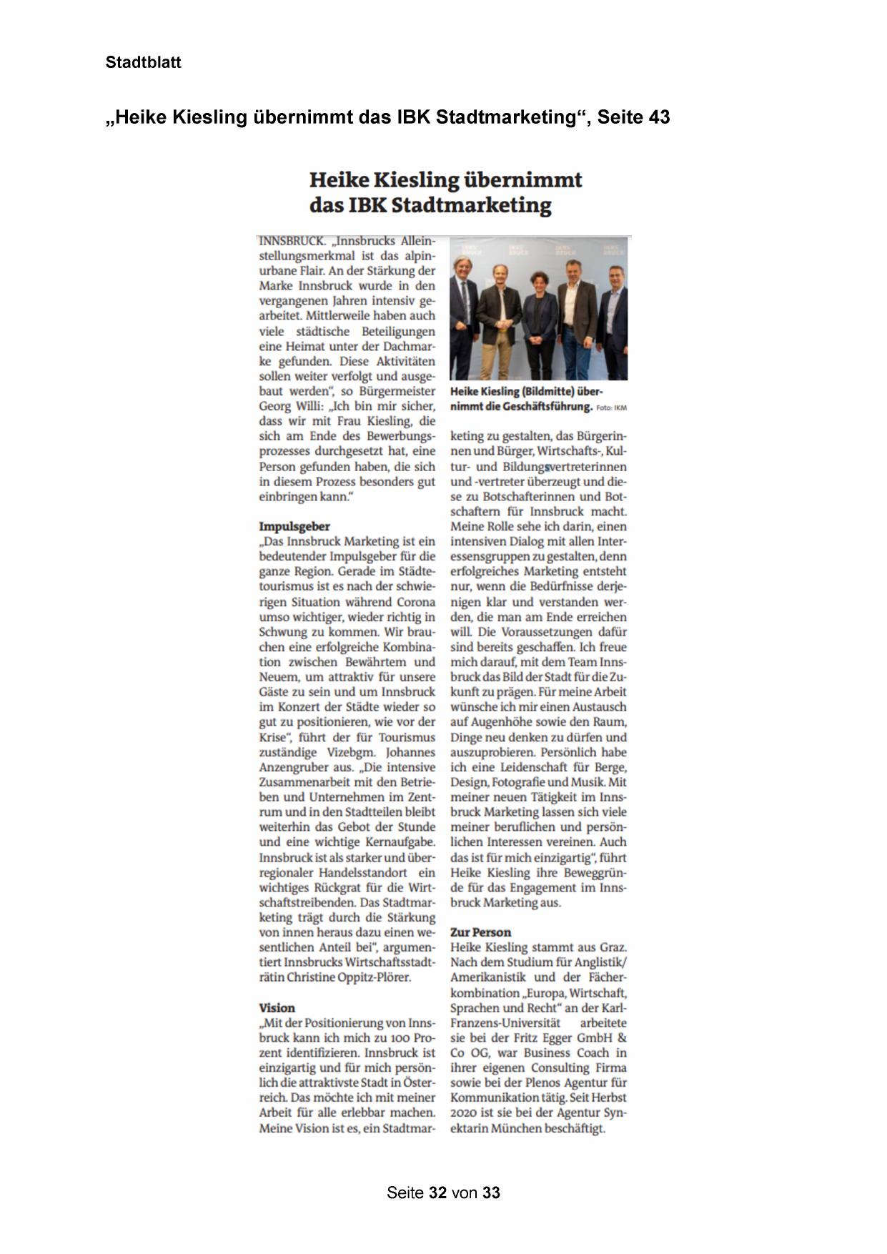 „Heike Kiesling übernimmt das IBK Stadtmarketing“, Seite 43