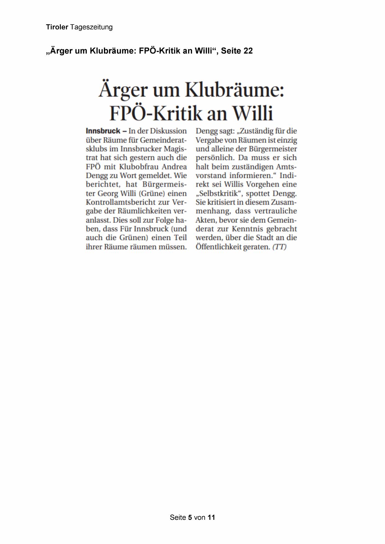 „Ärger um Klubräume: FPÖ-Kritik an Willi“, Seite 22