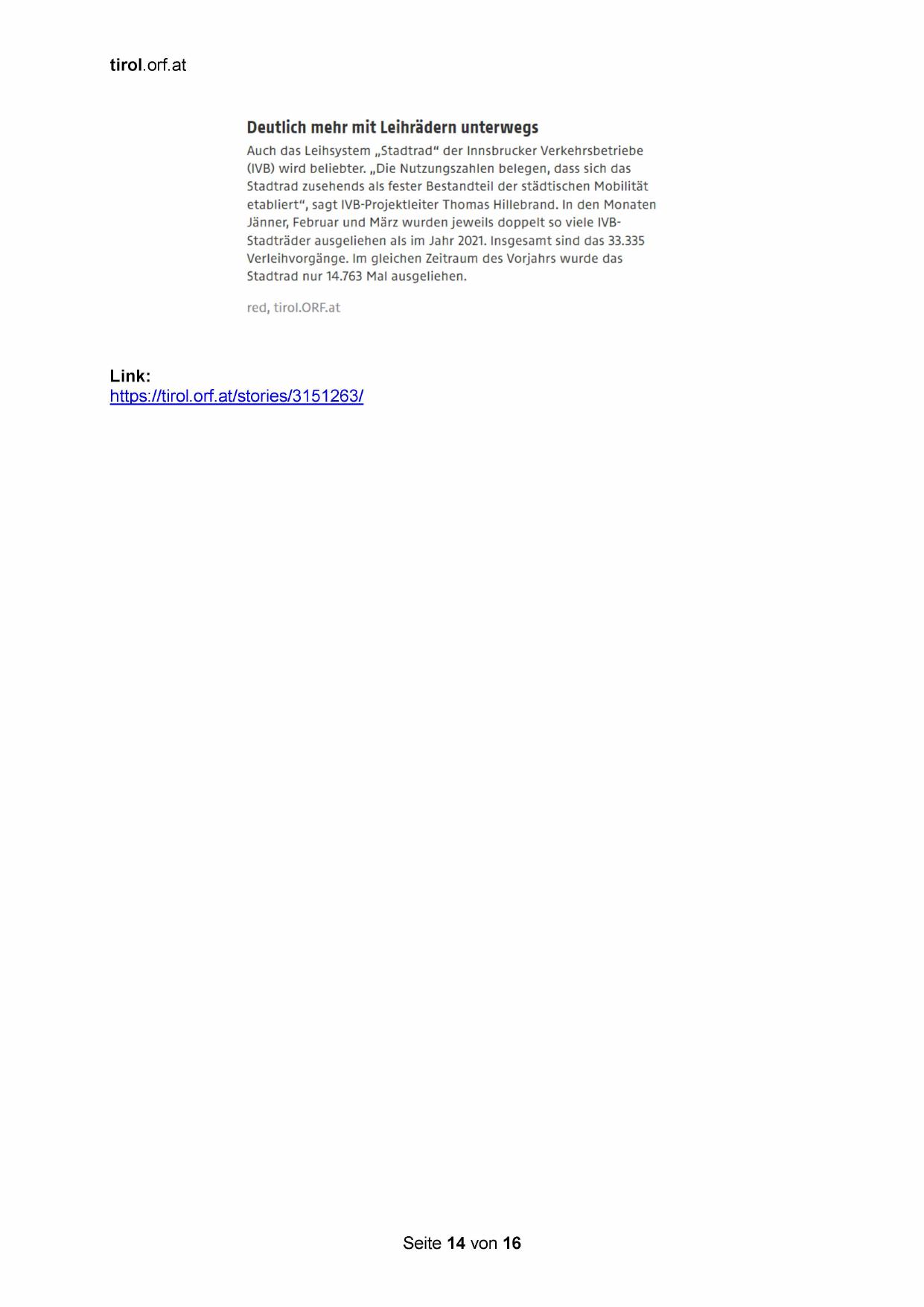 Stadtrad nur 14.763 Mal ausgeliehen.