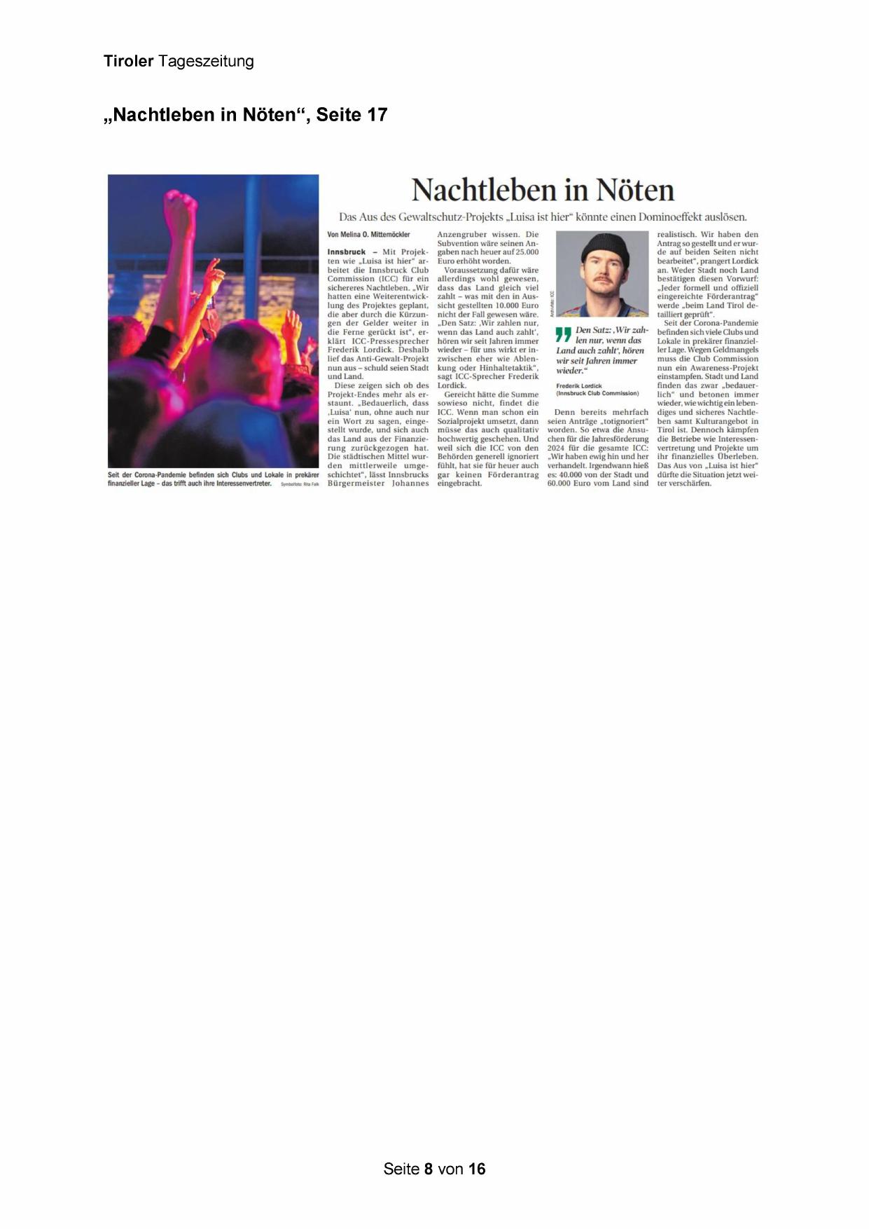 Innsbruck —- Mit Projekten wie „Luisa ist hier“ arbeitet die Innsbruck Club