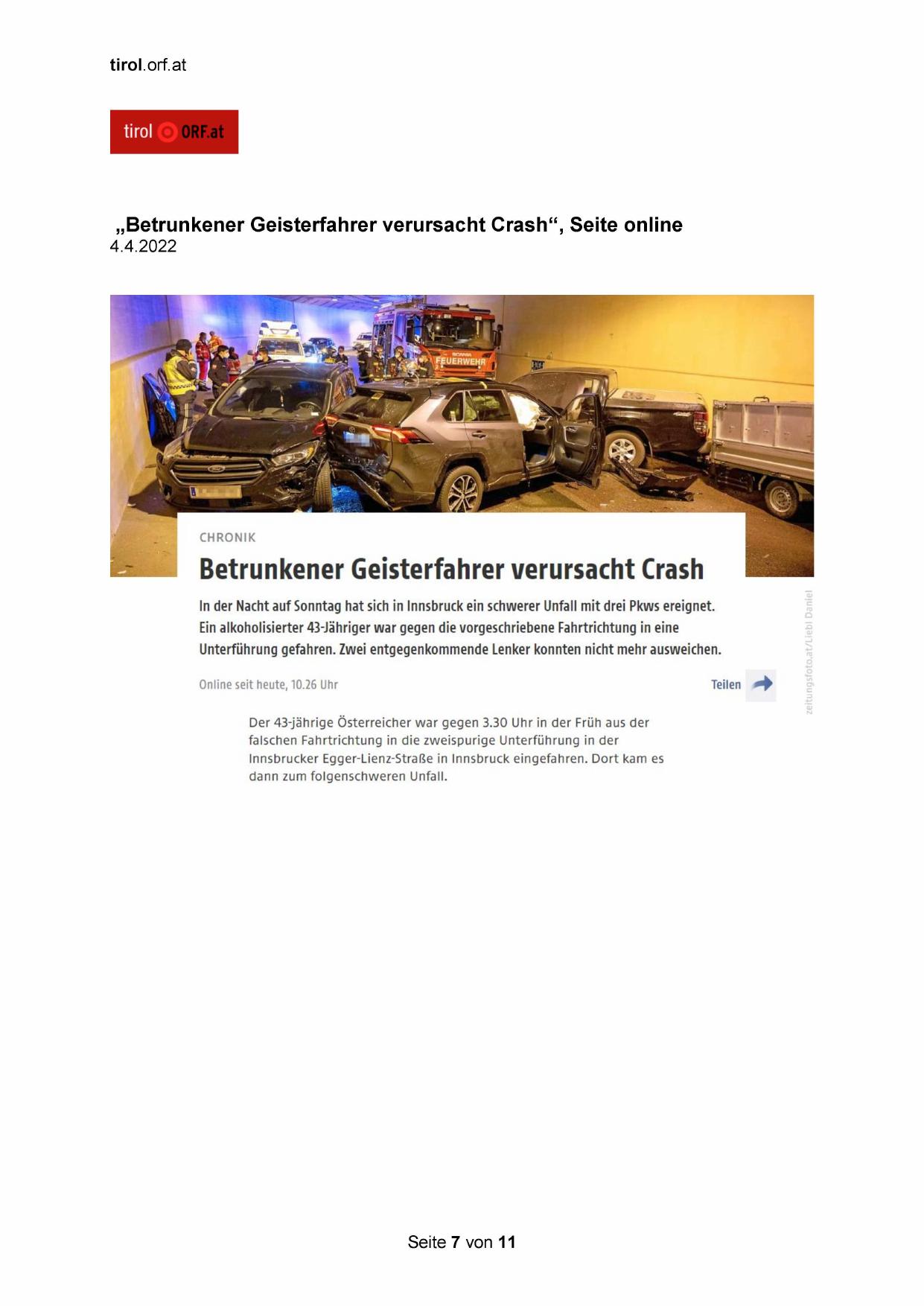 „Betrunkener Geisterfahrer verursacht Crash“, Seite online