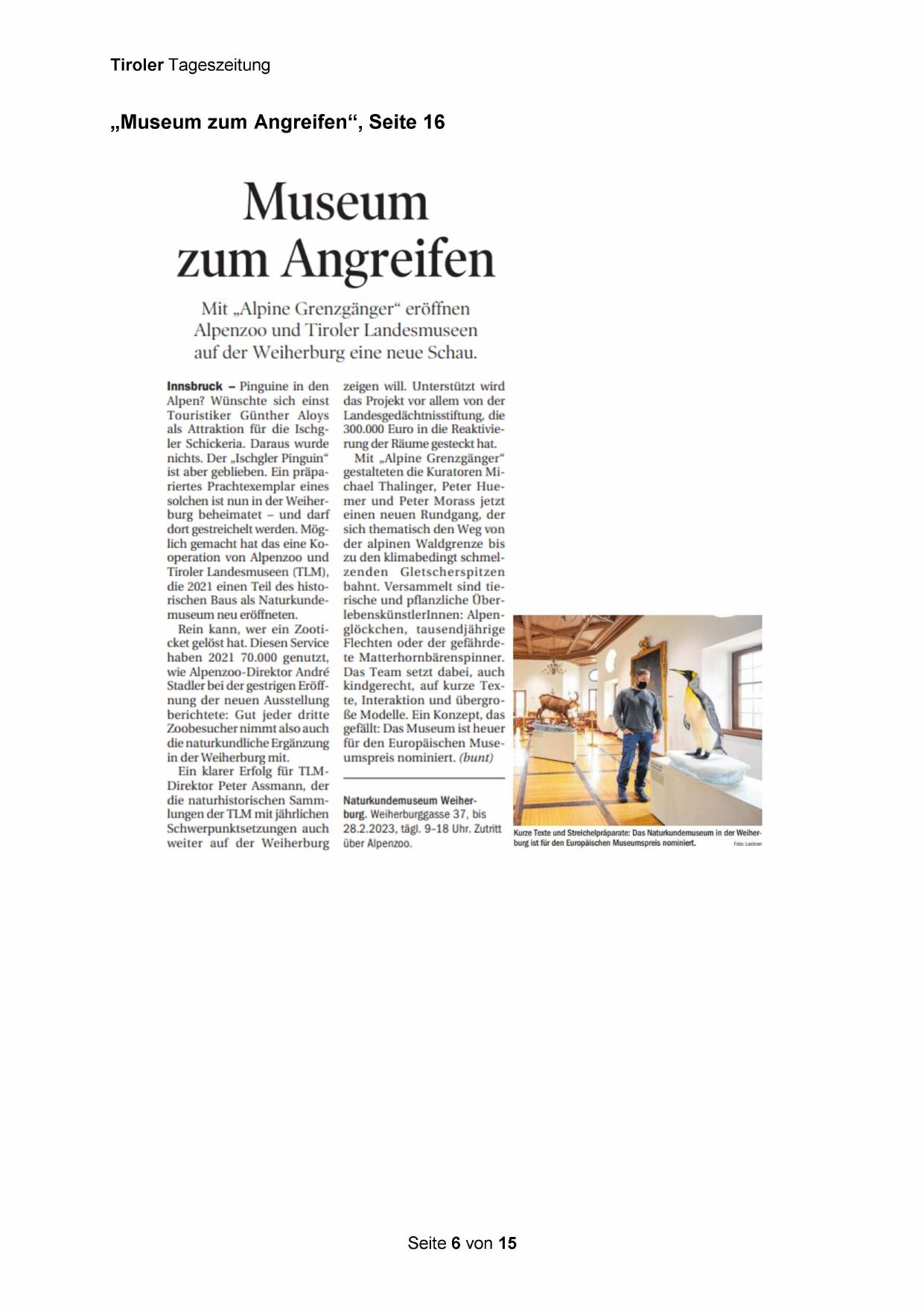 28.2.2023, tägl. 9-18 Uhr. Zutritt /yrze Texte und Streichelpräparate: Das Naturkundemuseum in der Weiher-