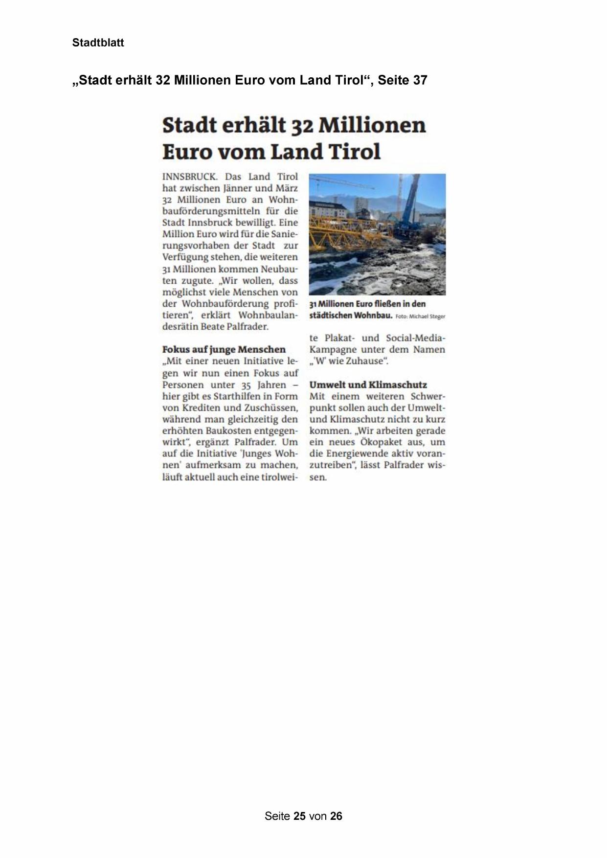 „Stadt erhält 32 Millionen Euro vom Land Tirol“, Seite 37