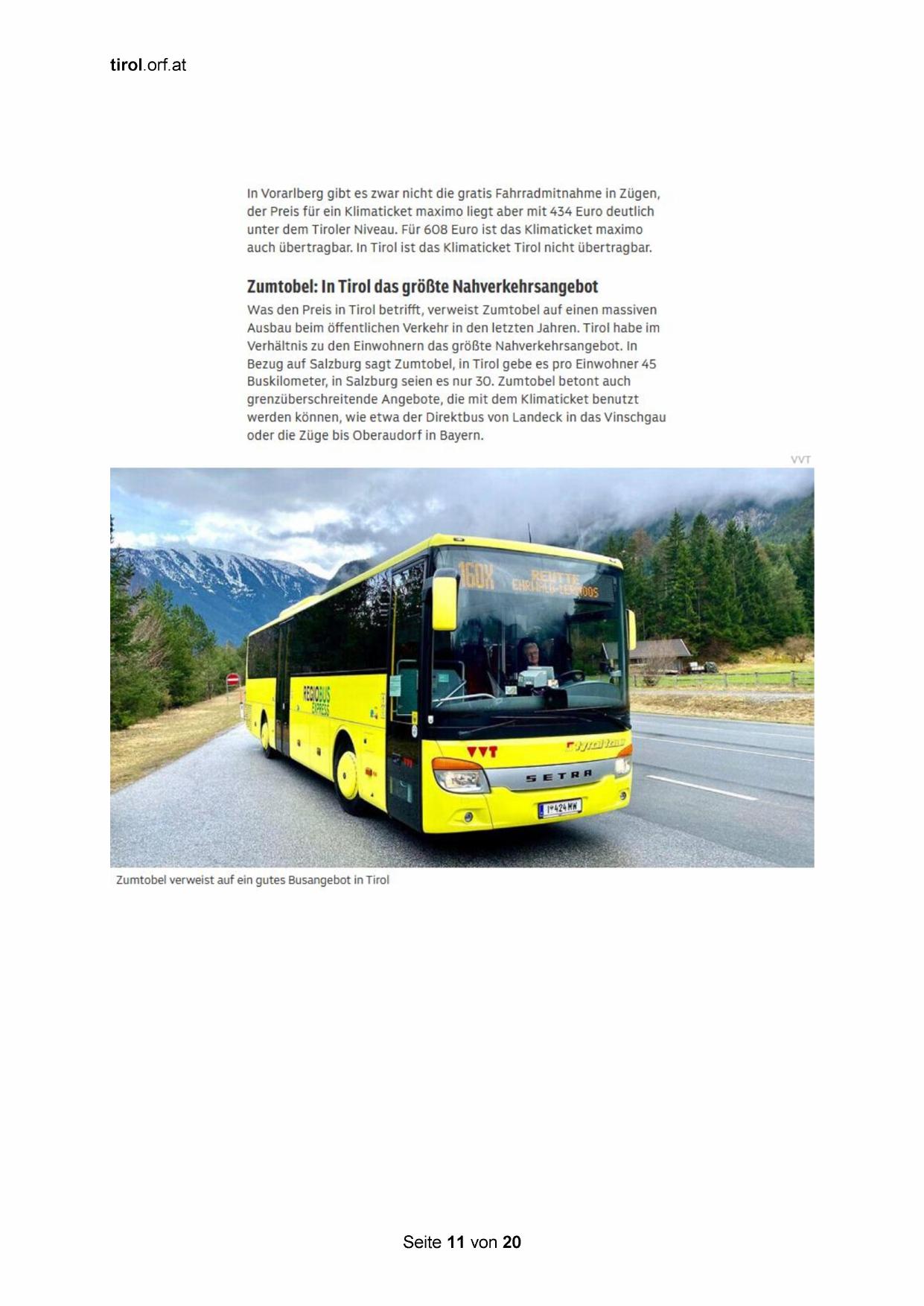 Zumtobel verweist auf ein gutes Busangebot in Tirol