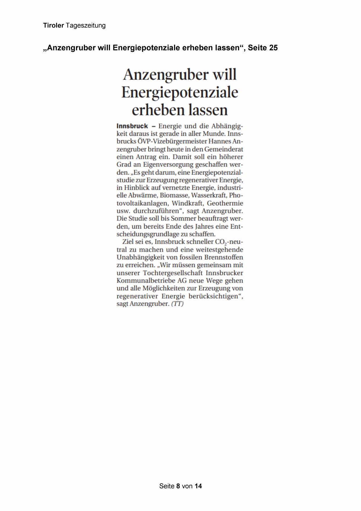 „Anzengruber will Energiepotenziale erheben lassen“, Seite 25