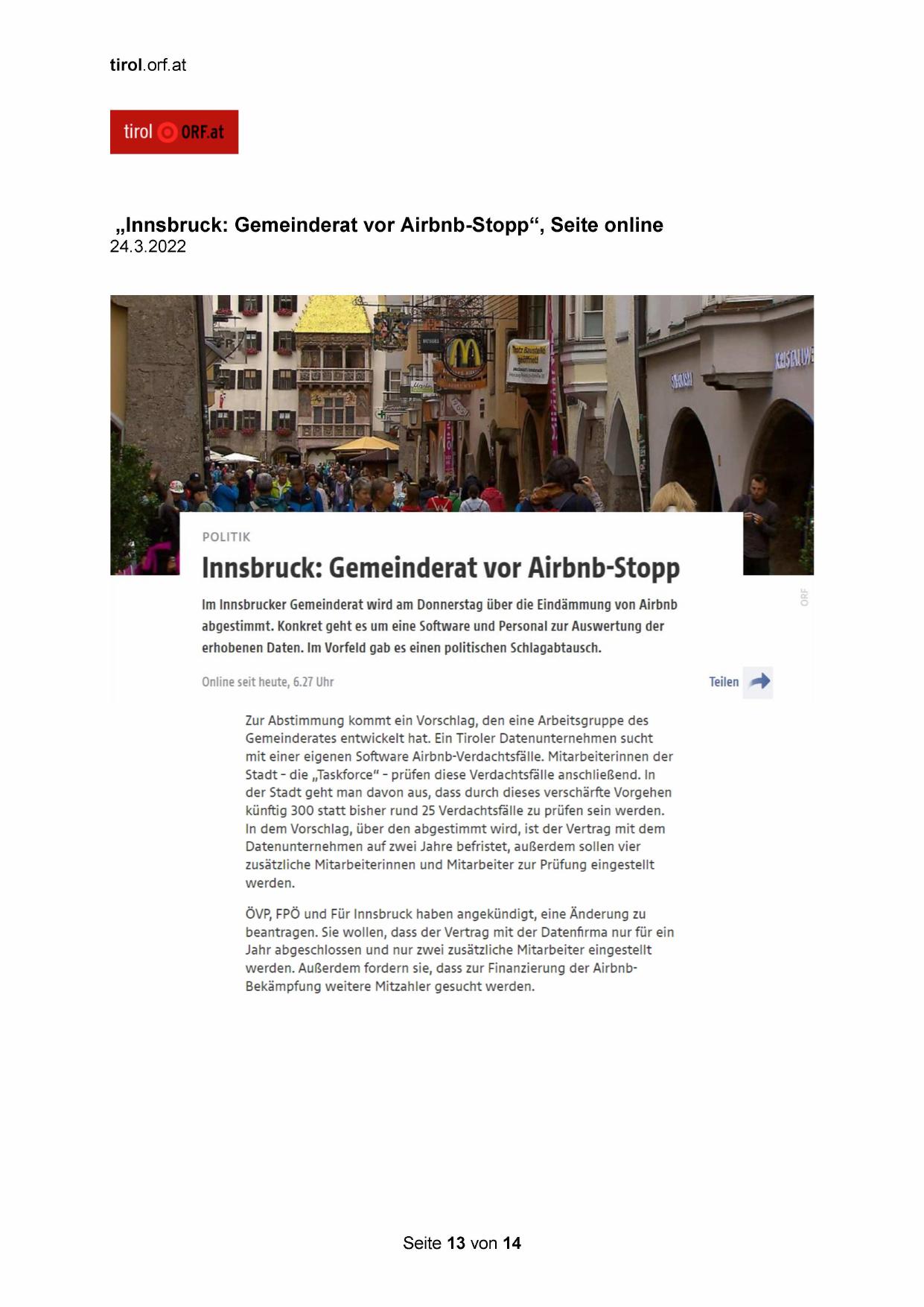„Innsbruck: Gemeinderat vor Airbnb-Stopp“, Seite online