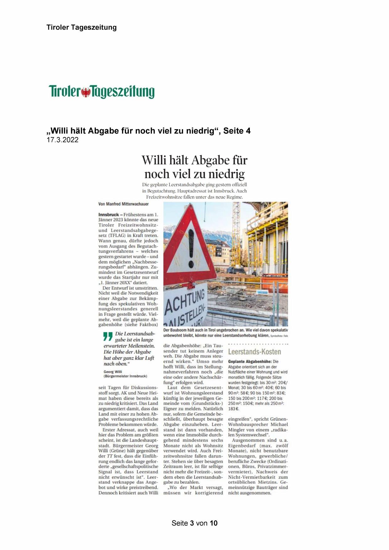 in Begutachtung. Hauptadressat ist Innsbruck. Auch