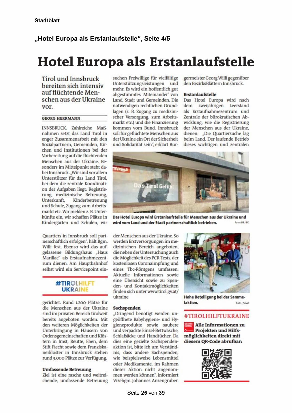 Menschen aus der Ukraine. Besonders im Mittelpunkt steht dabei Innsbruck. „Wir sind vor allem
