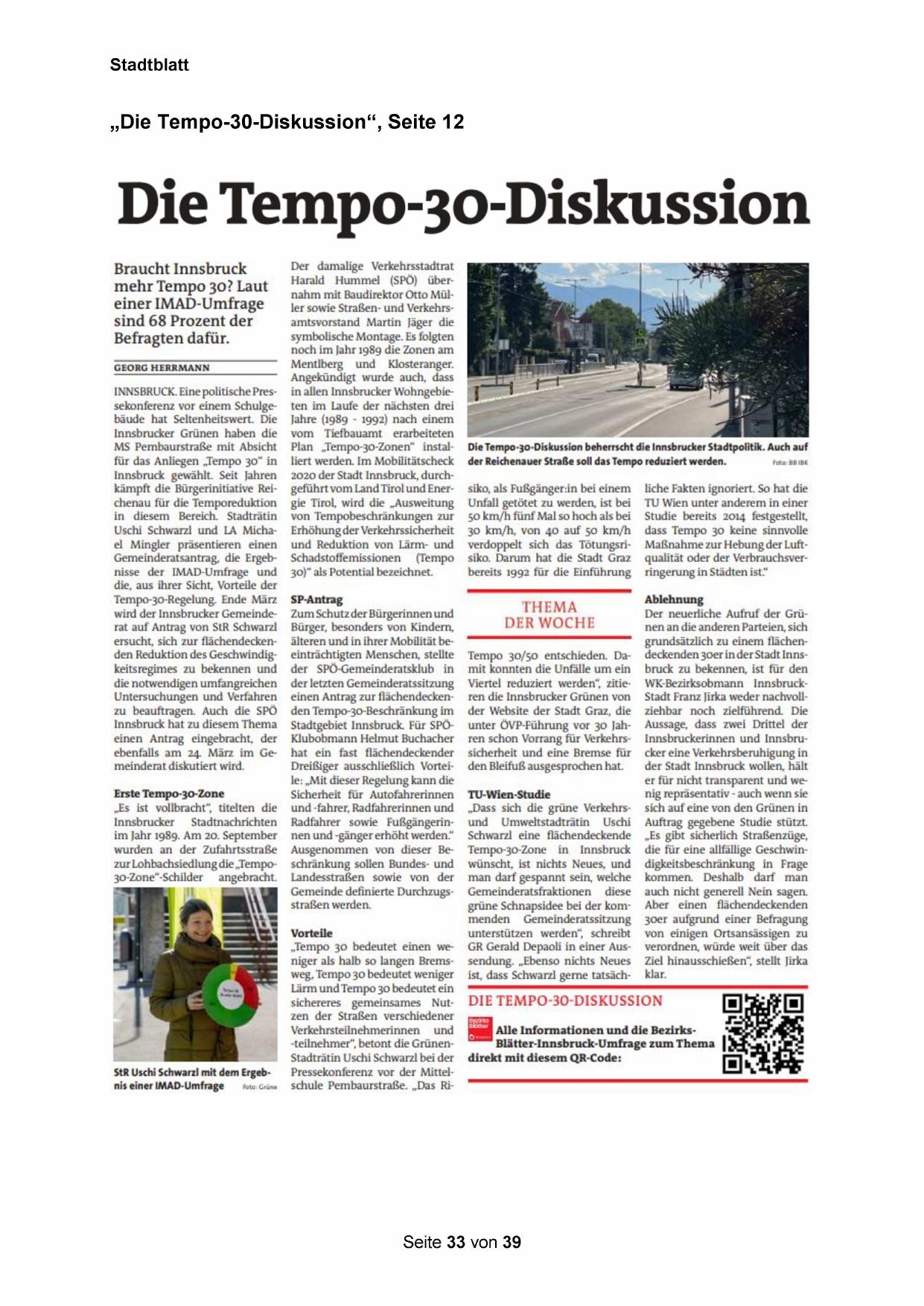 grundsätzlich zu einem flächendeckenden 30er in der Stadt Innsbruck zu bekennen, ist für den