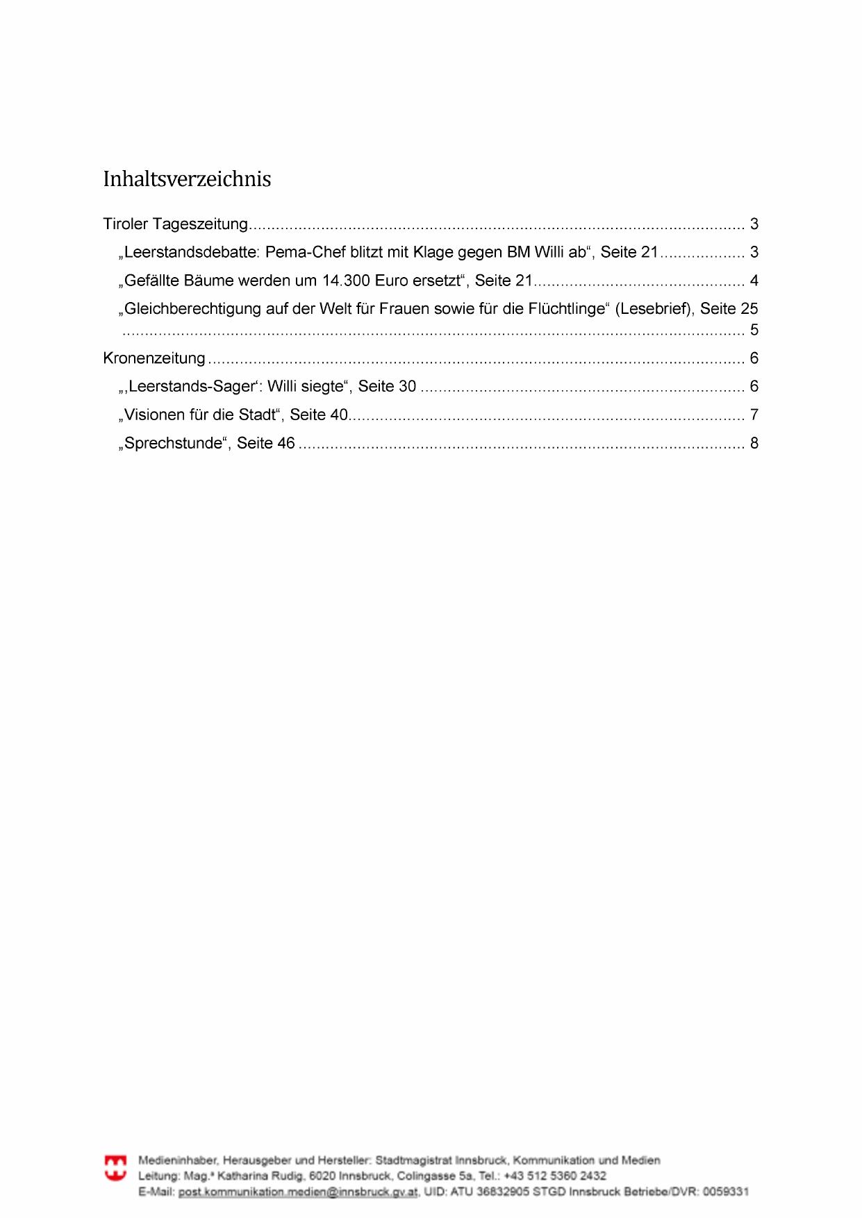 „Leerstandsdebatte: Pema-Chef blitzt mit Klage gegen BM Willi ab“, Seite 21................... 3