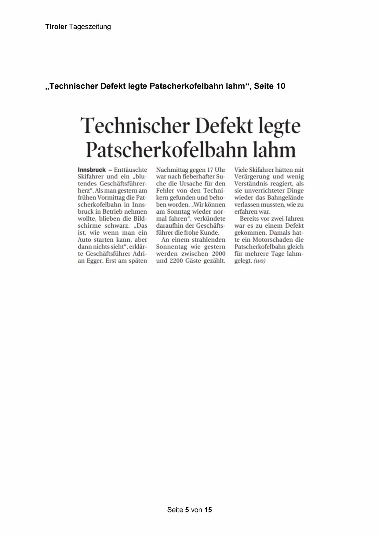 „Technischer Defekt legte Patscherkofelbahn lahm“, Seite 10