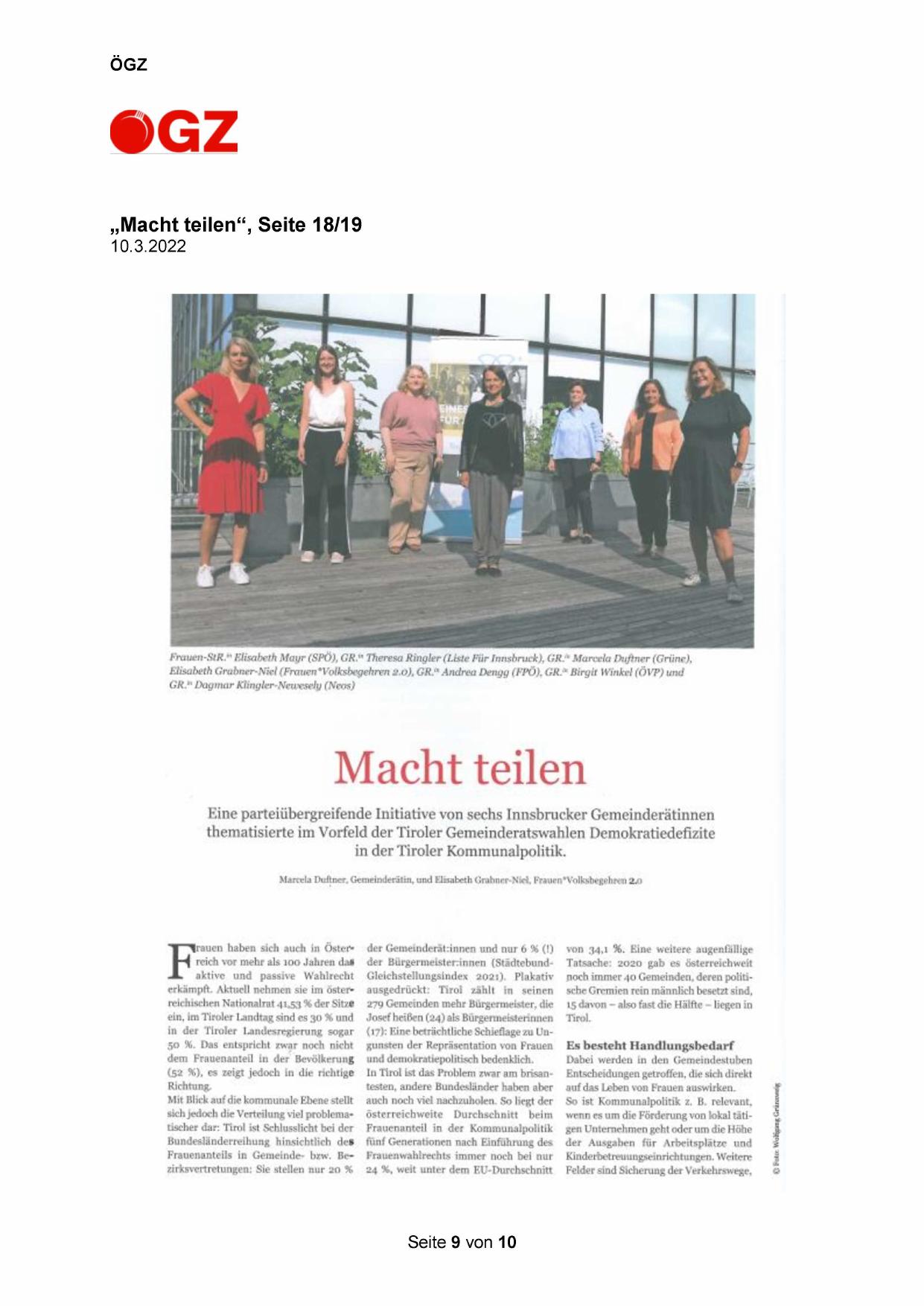 Eine parteiübergreifende Initiative von sechs Innsbrucker Gemeinderätinnen