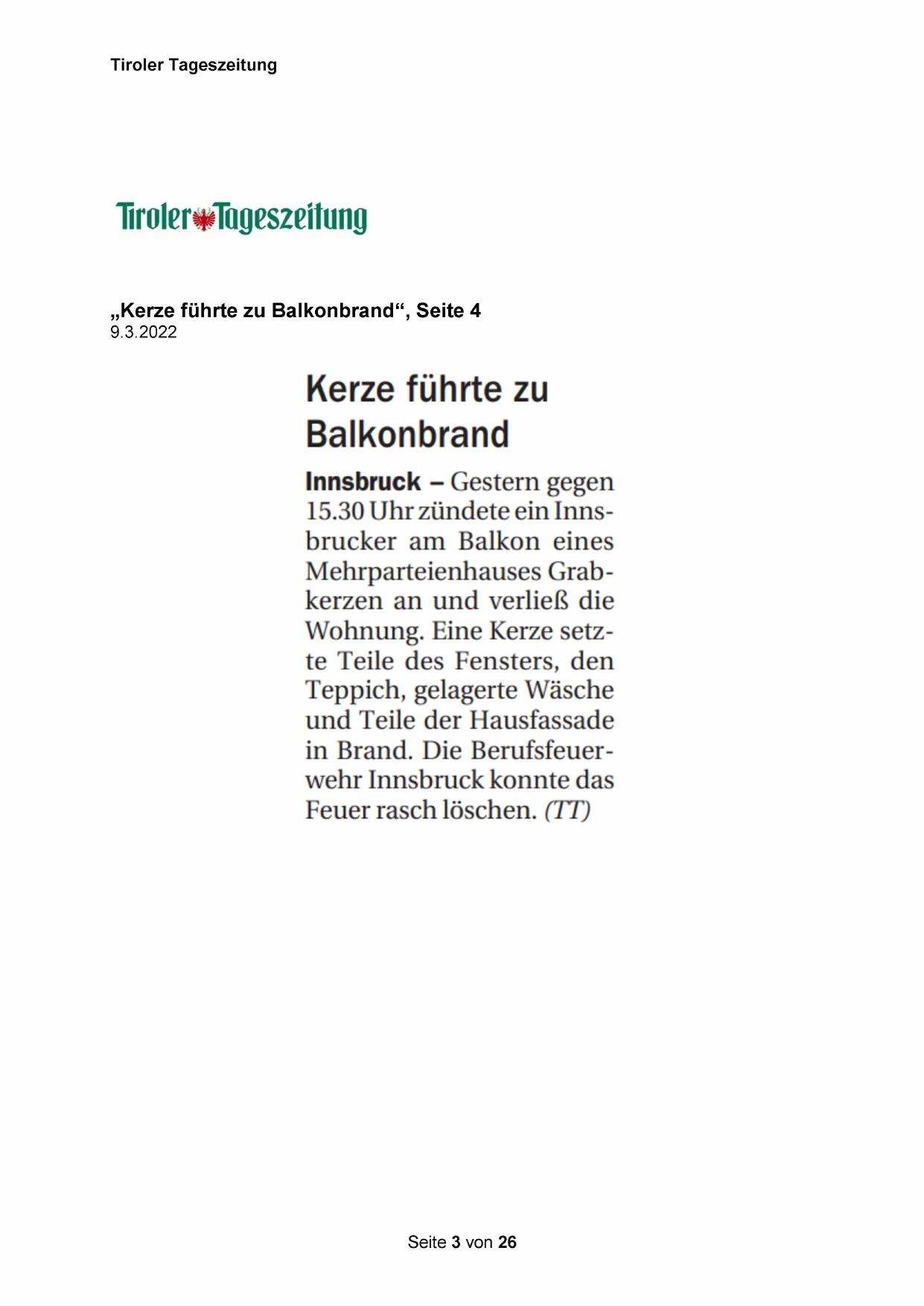 in Brand. Die Berufsfeuerwehr Innsbruck konnte das