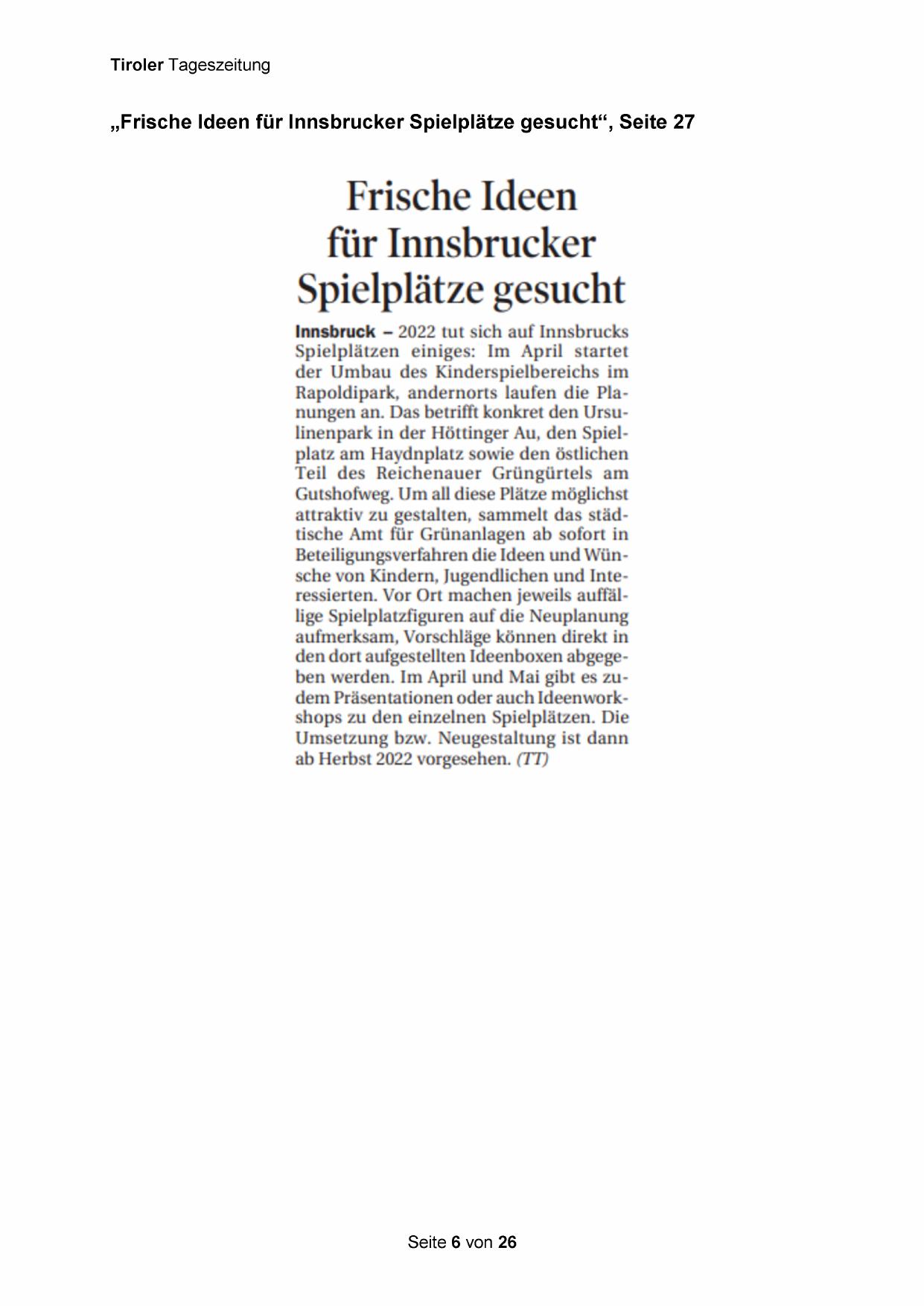 „Frische Ideen für Innsbrucker Spielplätze gesucht“, Seite 27