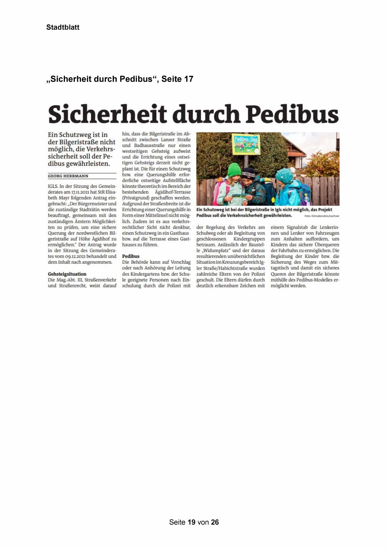 IGLS. In der Sitzung des Gemeinderates am 17.11.2021 hat StR Elisabeth Mayr folgenden Antrag eingebracht: „Der Bürgermeister und