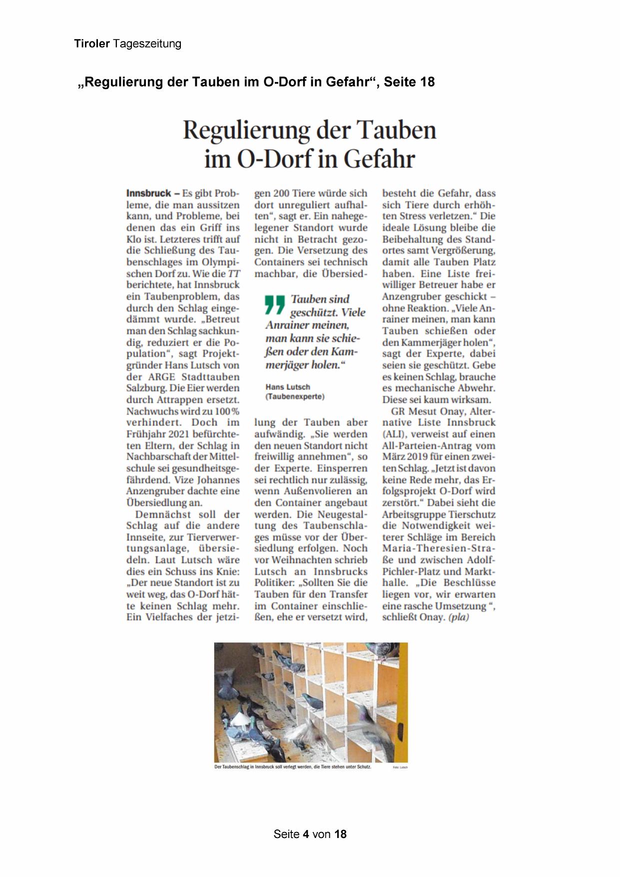 „Regulierung der Tauben im O-Dorf in Gefahr“, Seite 18