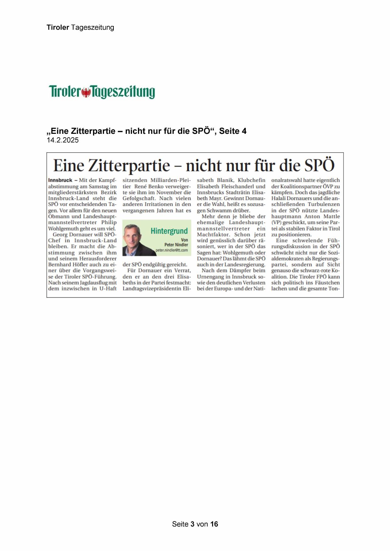 Bernhard Höfler auch zu einer über die Vorgangsweise der Tiroler SPÖ-Führung.