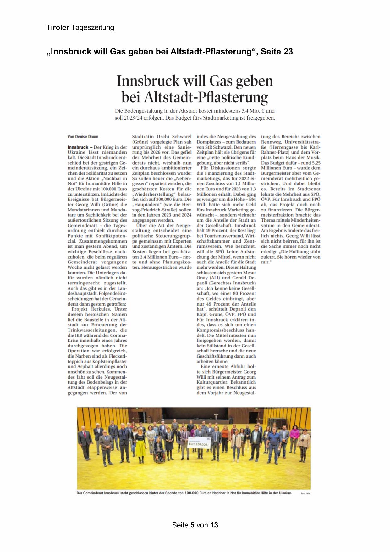 „Innsbruck will Gas geben bei Altstadt-Pflasterung“, Seite 23