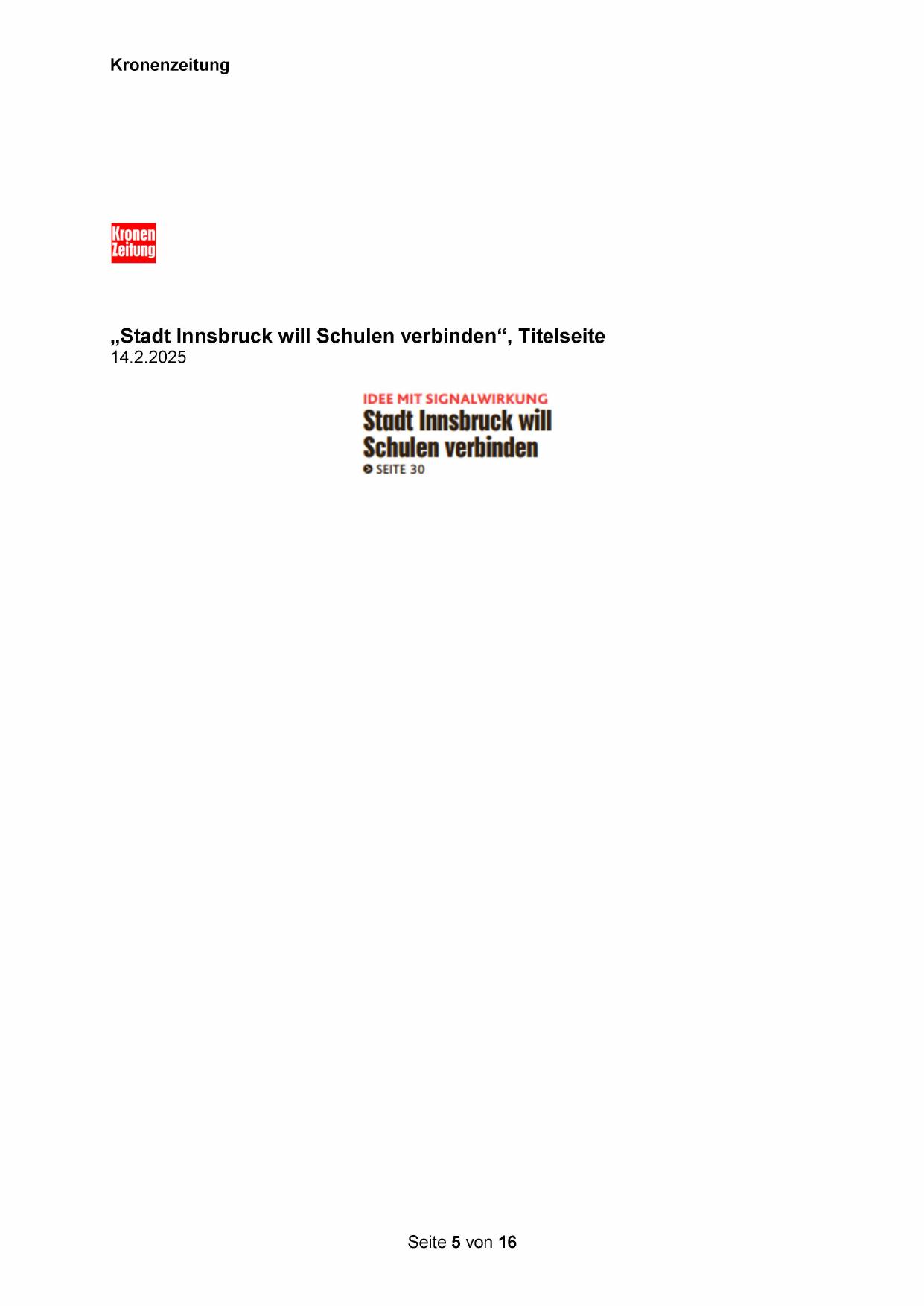 „Stadt Innsbruck will Schulen verbinden“, Titelseite