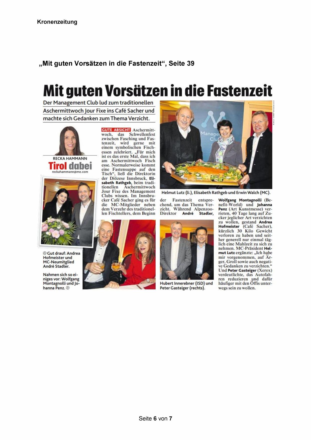 Aschermittwoch Jour Fixe ins Cafe Sacher und