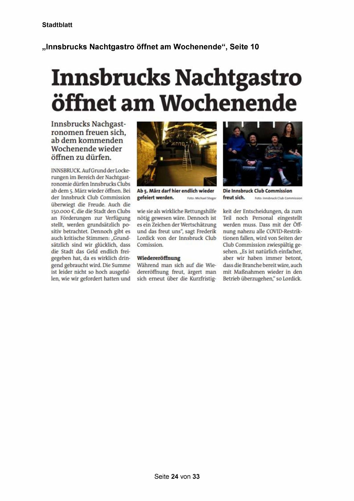 „Innsbrucks Nachtgastro öffnet am Wochenende“, Seite 10