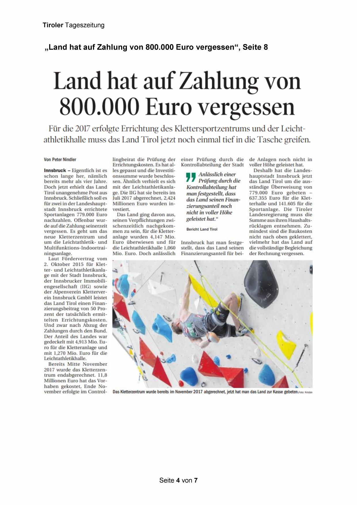 „Land hat auf Zahlung von 800.000 Euro vergessen“, Seite 8