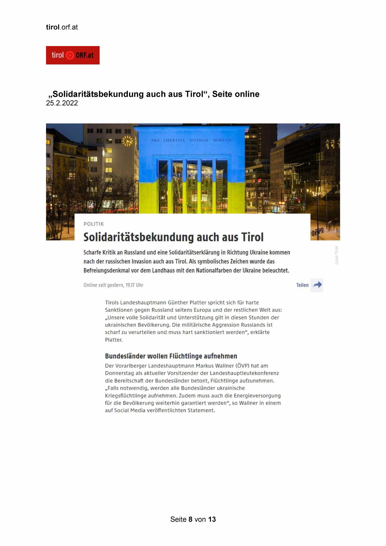 „Solidaritätsbekundung auch aus Tirol“, Seite online