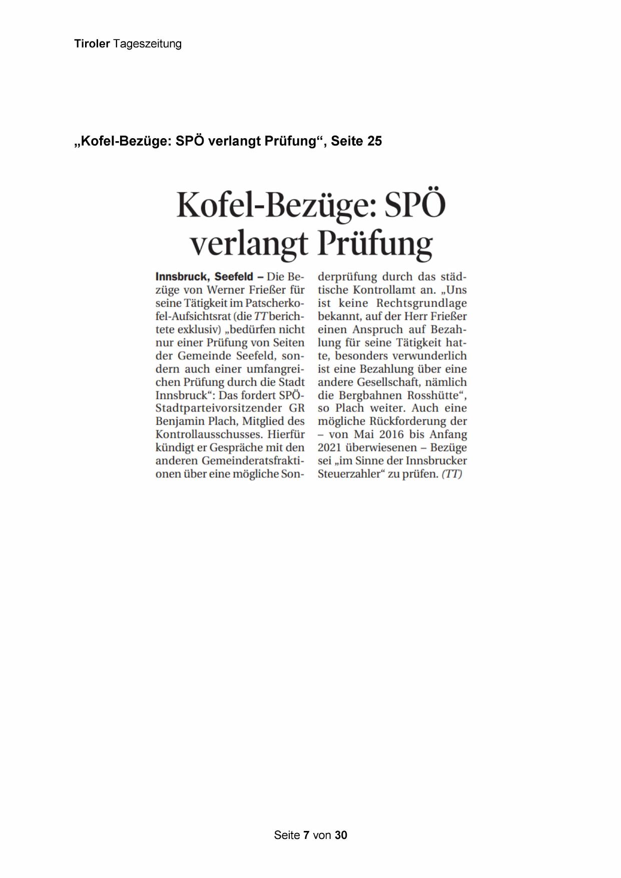 „Kofel-Bezüge: SPÖ verlangt Prüfung“, Seite 25