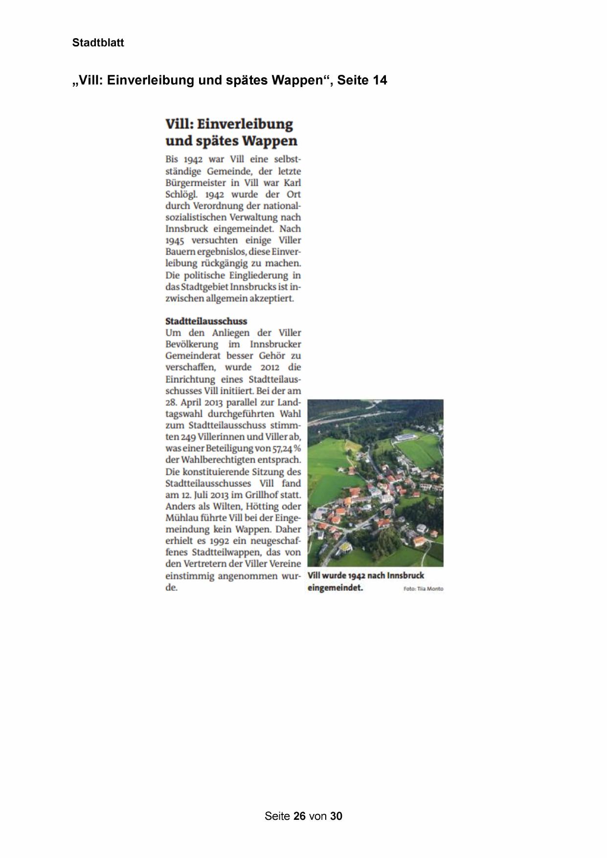 „Vill: Einverleibung und spätes Wappen“, Seite 14