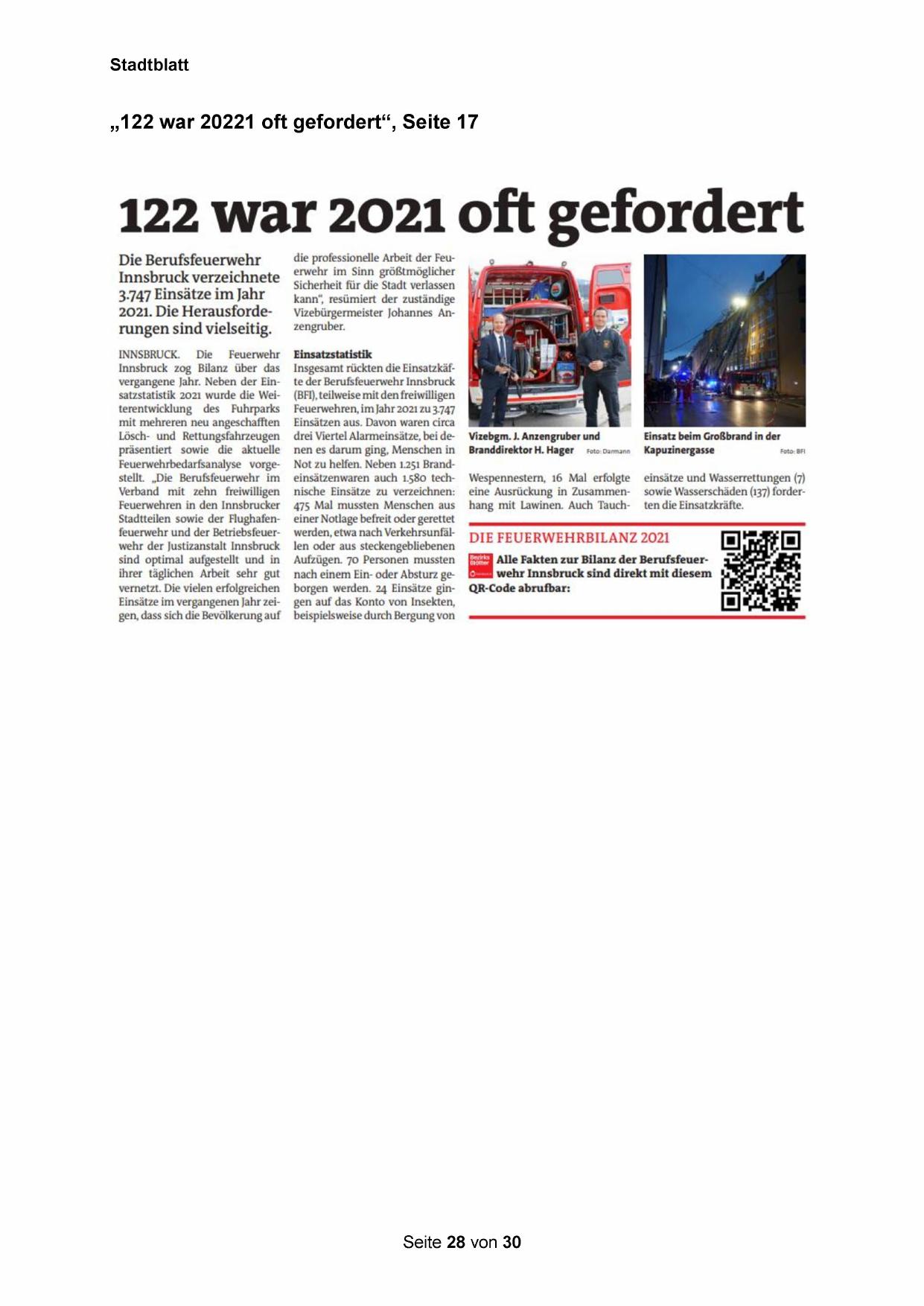 Stadtteilen sowie der Flughafenfeuerwehr und der Betriebsfeuerwehr der Justizanstalt Innsbruck