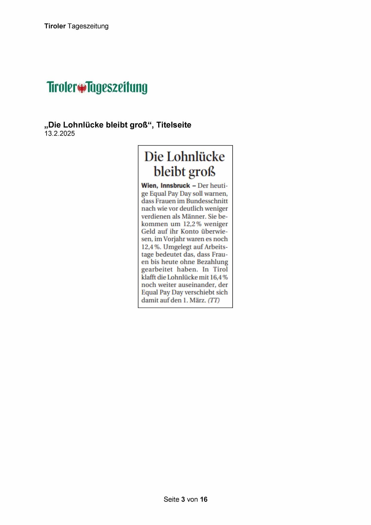 Wien, Innsbruck — Der heutige Equal Pay Day soll warnen,