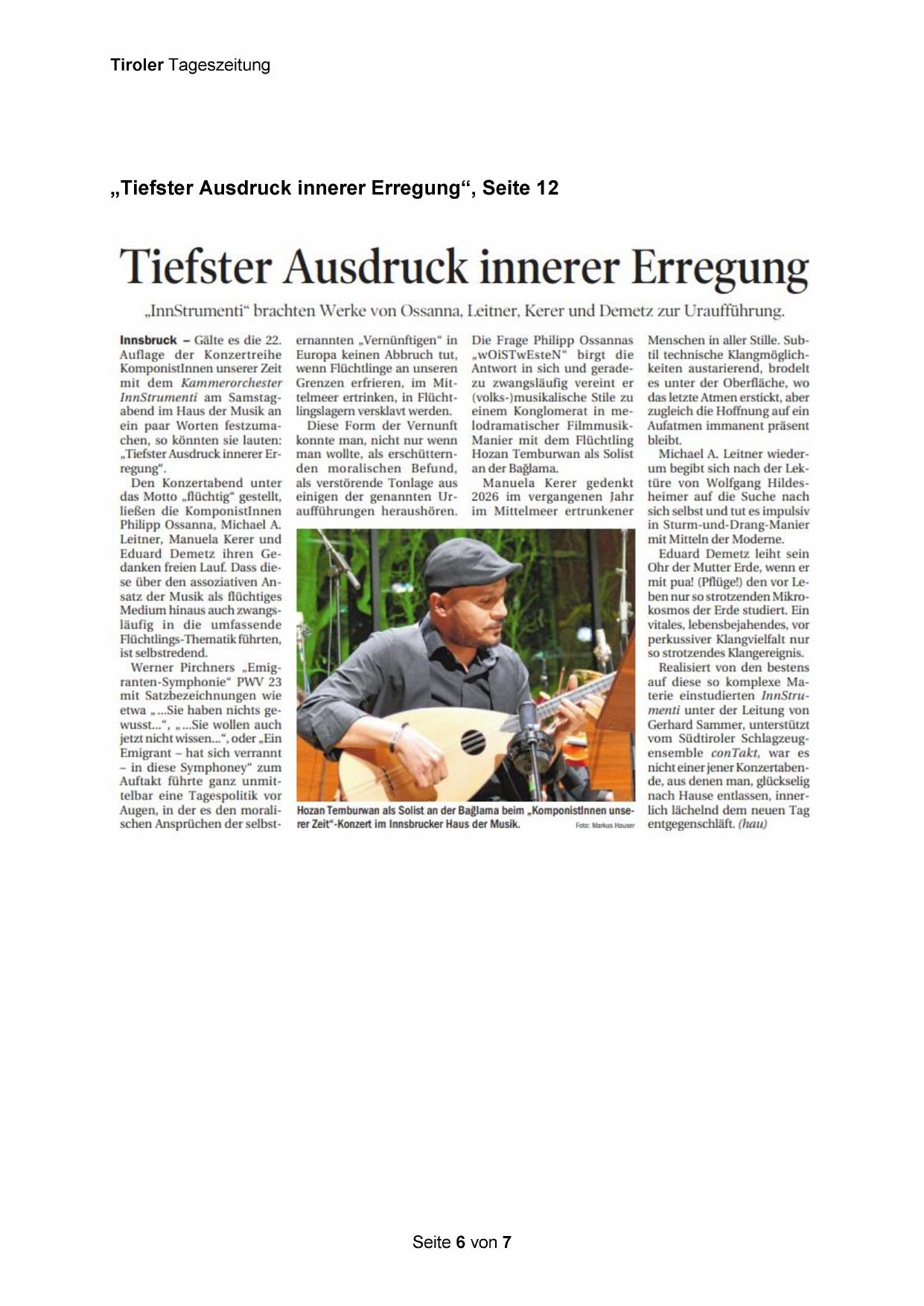 „InnStrumenti“ brachten Werke von Ossanna, Leitner, Kerer und Demetz zur Uraufführung.