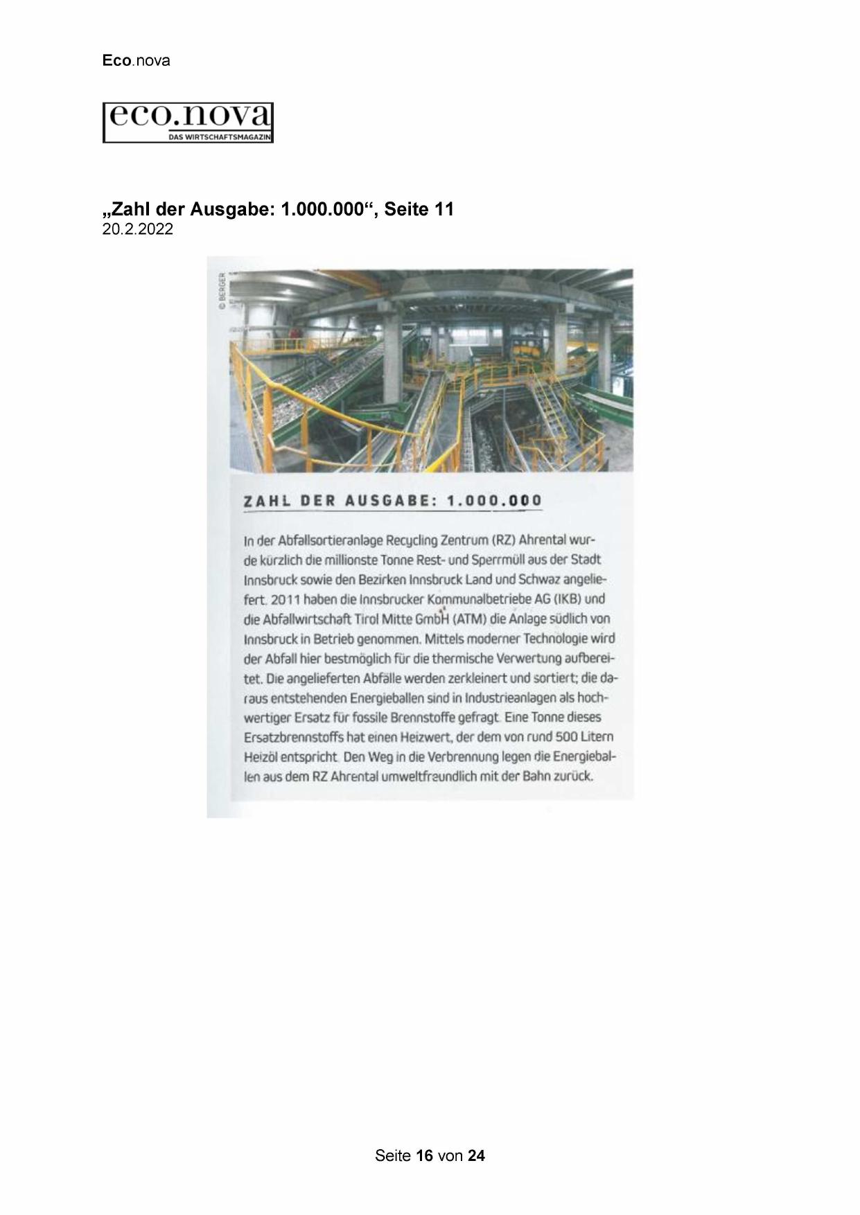 Innsbruck sowie den Bezirken Innsbruck Land und Schwaz angeliefert. 2011 haben die Innsbrucker Kommunalbetriebe AG (IKB) und