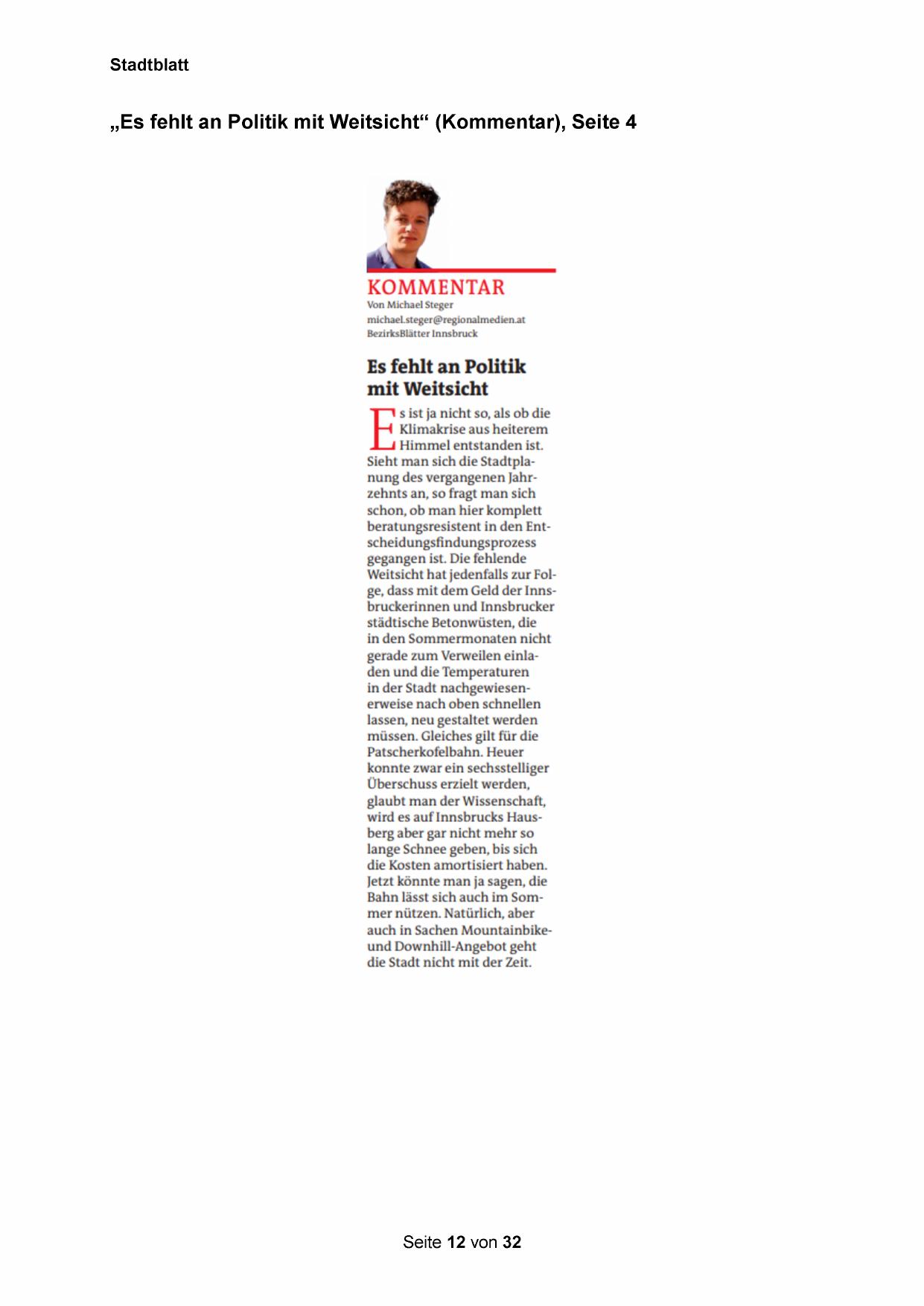 Weitsicht hat jedenfalls zur Folge, dass mit dem Geld der Innsbruckerinnen und Innsbrucker