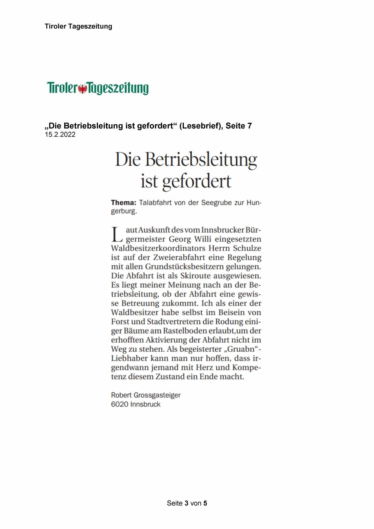 L aut Auskunft des vom Innsbrucker Bürgermeister Georg Willi eingesetzten