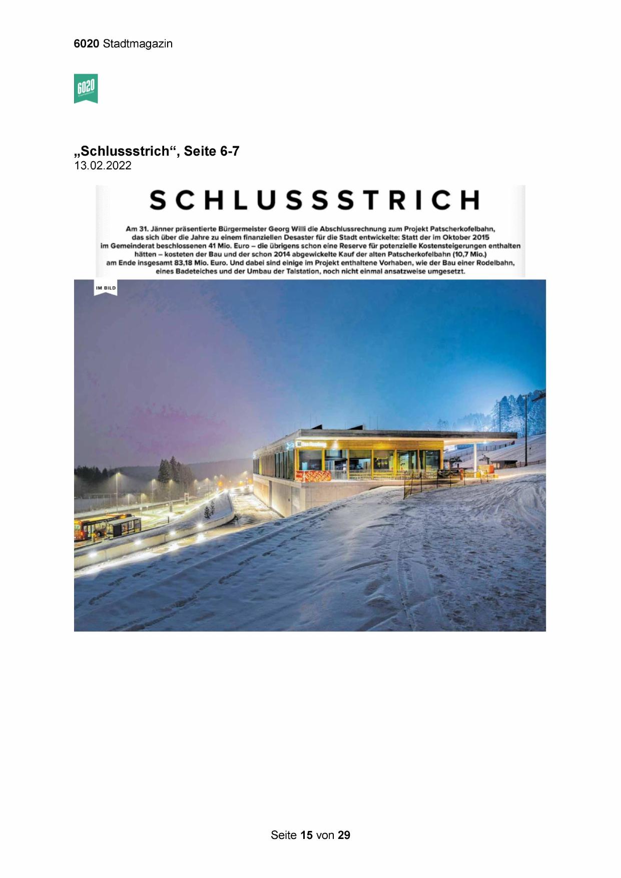 Am 31. Jänner präsentierte Bürgermeister Georg Willi die Abschlussrechnung zum Projekt Patscherkofelbahn,