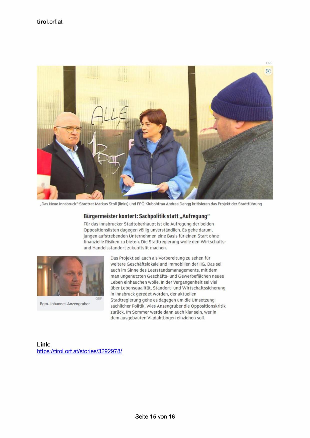 „Das Neue Innsbruck“-Stadtrat Markus Stoll (links) und FPÖ-Klubobfrau Andrea Dengg kritisieren das Projekt der Stadtführung